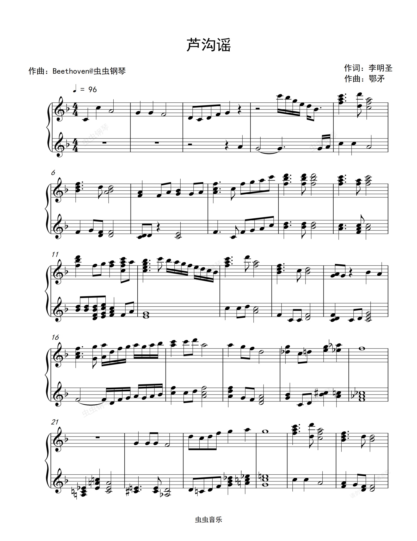 钢琴谱:卢沟谣-唱响中国获奖歌曲-李明圣