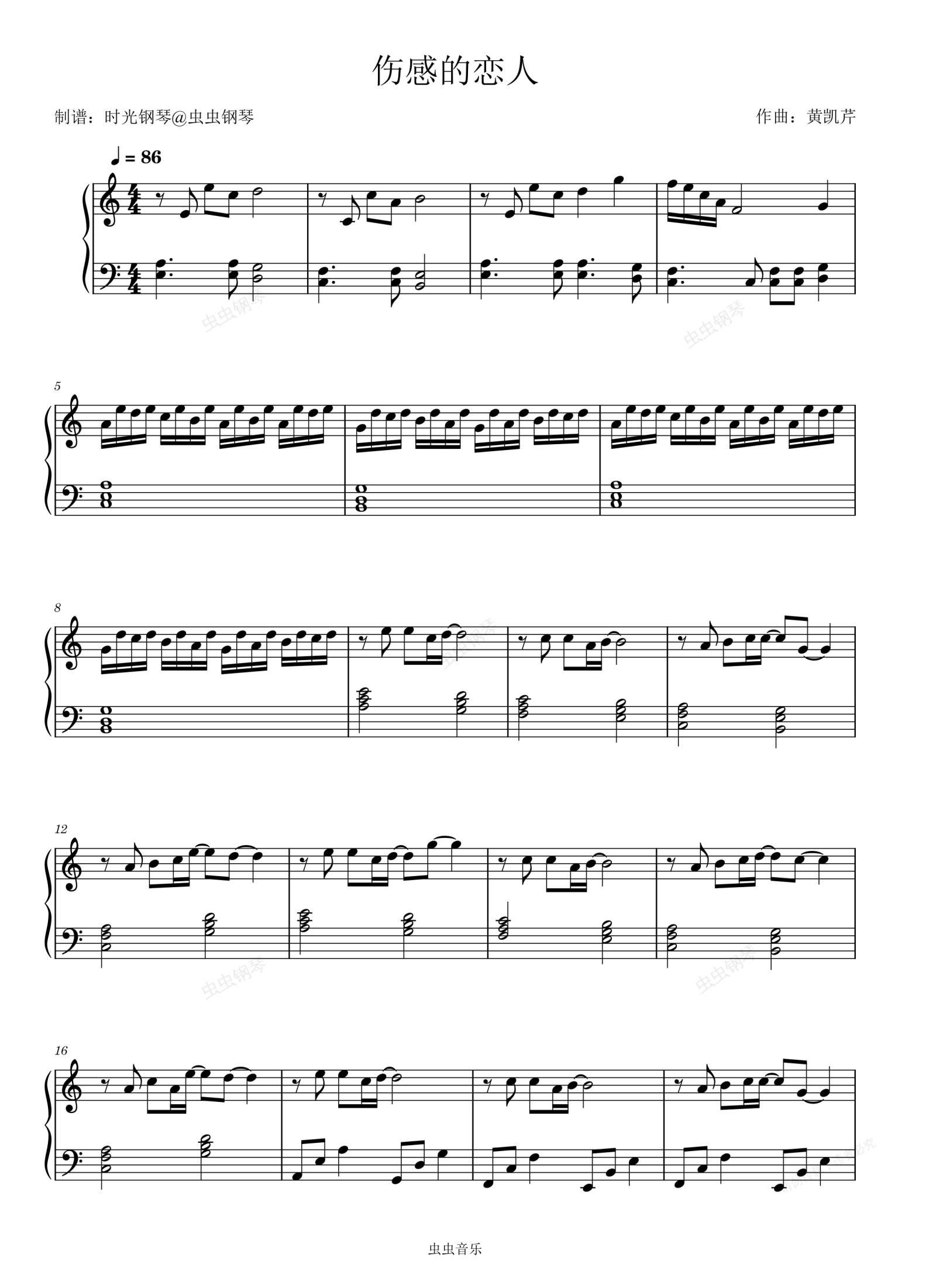 钢琴谱:伤感的恋人 黄凯芹 简单动听