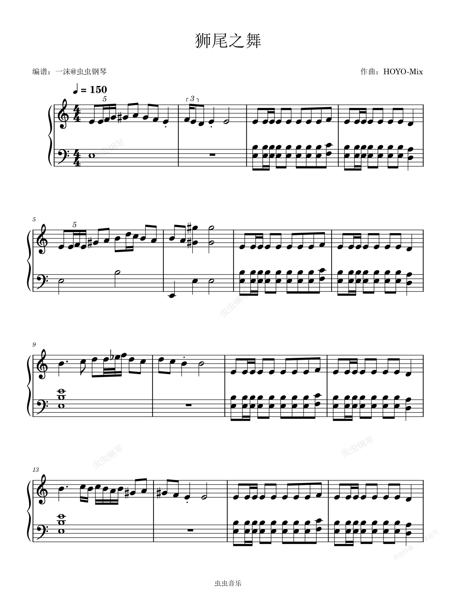 钢琴谱:原神-狮尾之舞 钢琴独奏