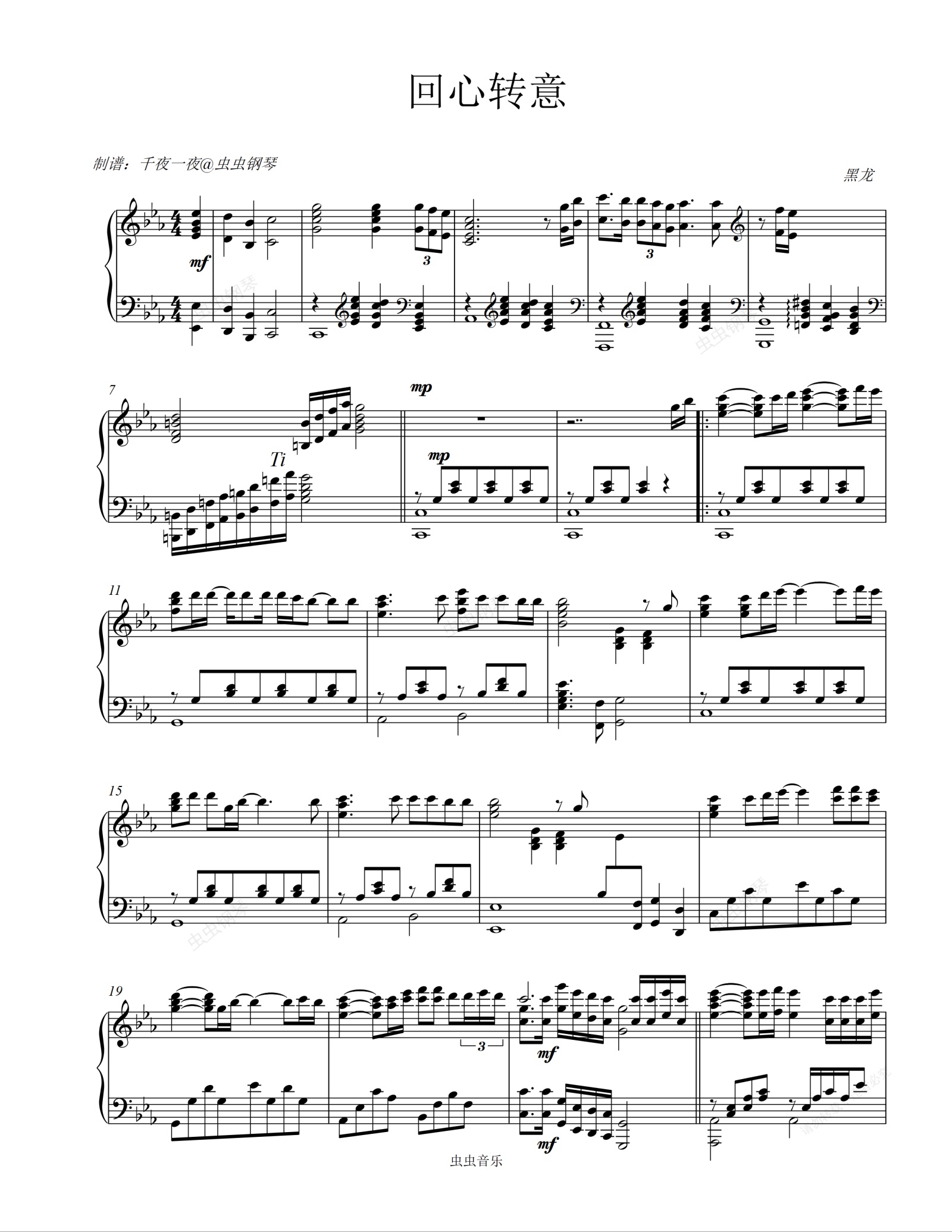 钢琴谱:黑龙成名曲《回心转意》,还有多少话要说,还有多少泪要流,太经典了