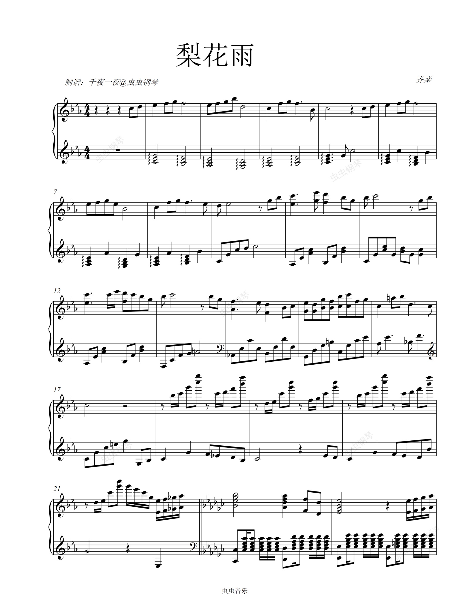 钢琴谱:《梨花雨》超好听的温婉清新曲风
