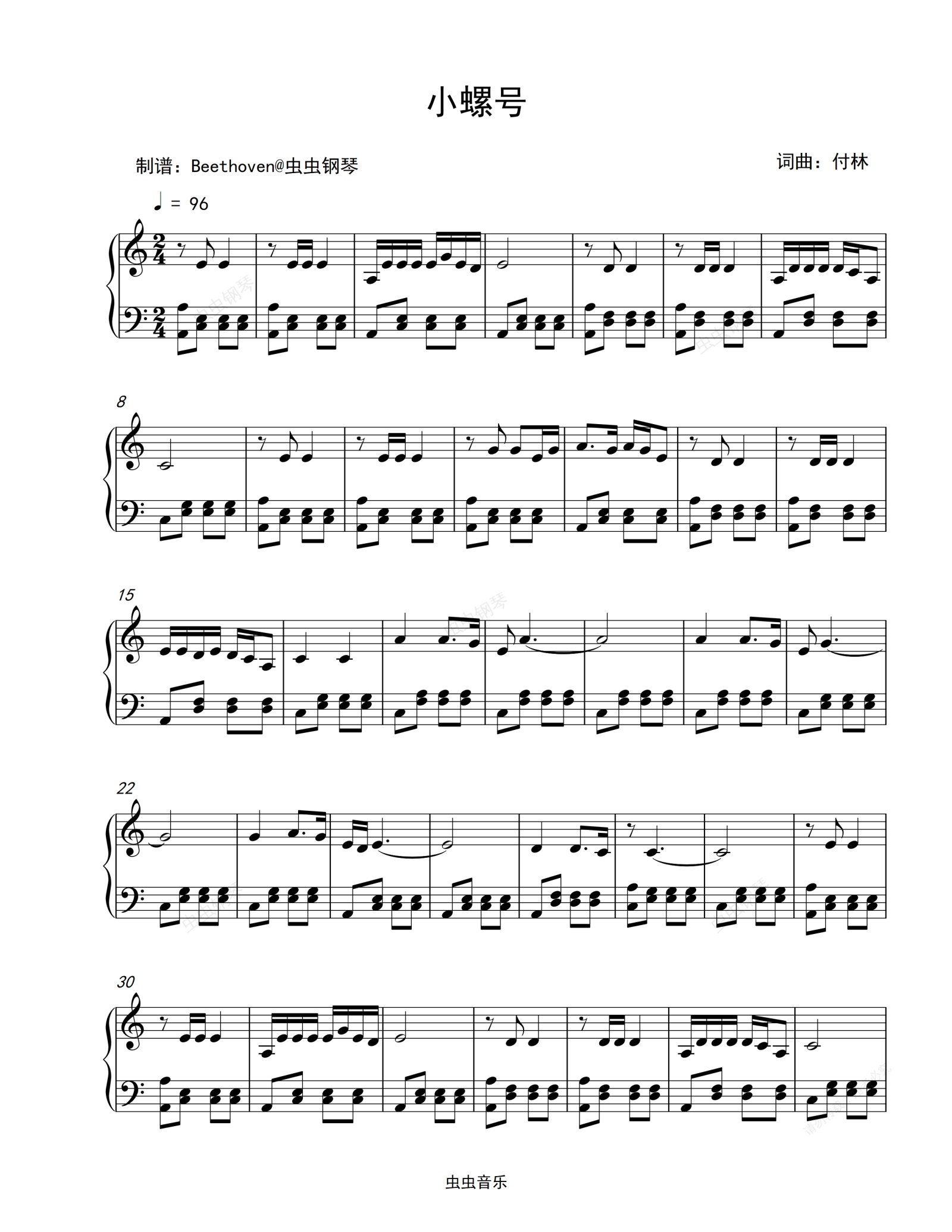 钢琴谱:小螺号-程琳