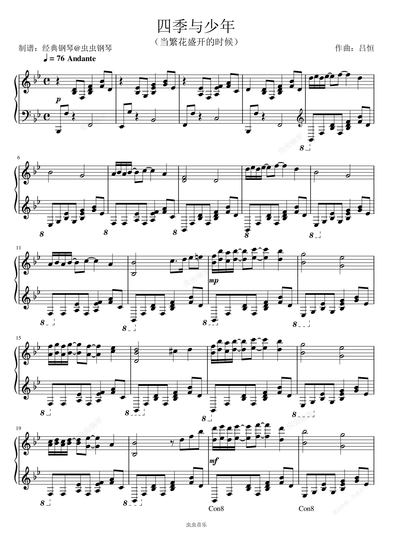 钢琴谱:四季与少年【原谱】
