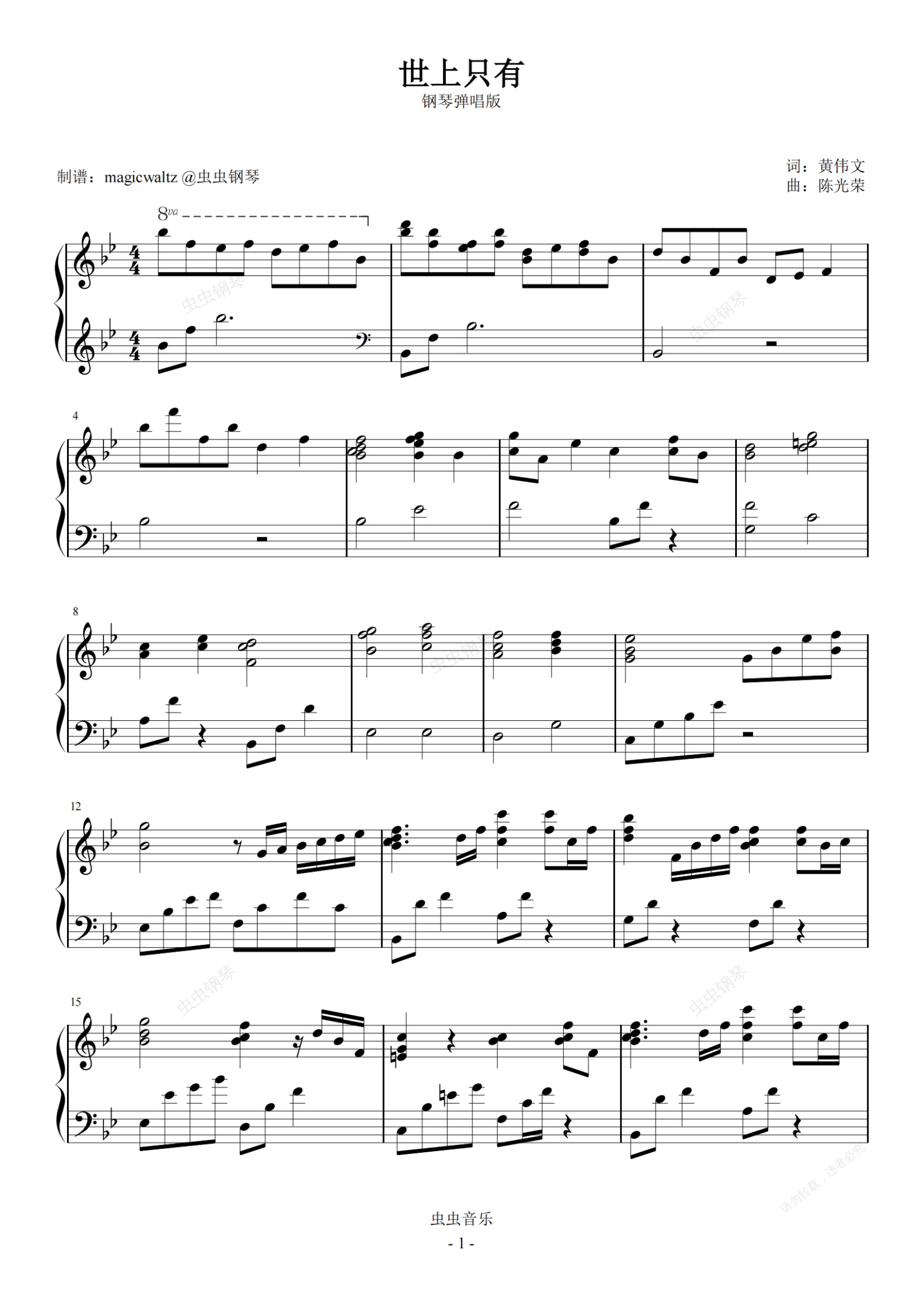 钢琴谱:世上只有-钢琴弹唱(降B调)男生版
