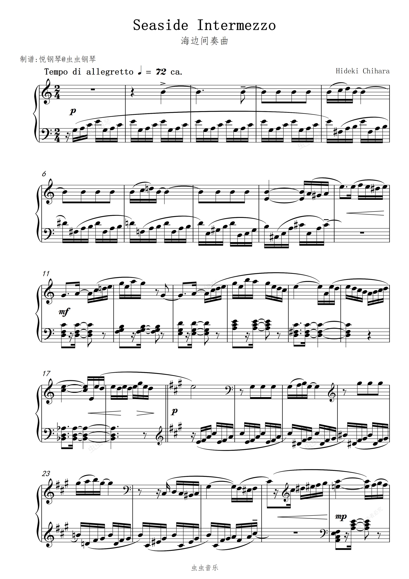 钢琴谱:海边间奏曲/Seaside Intermezzo【唯美-幻想】星月夜