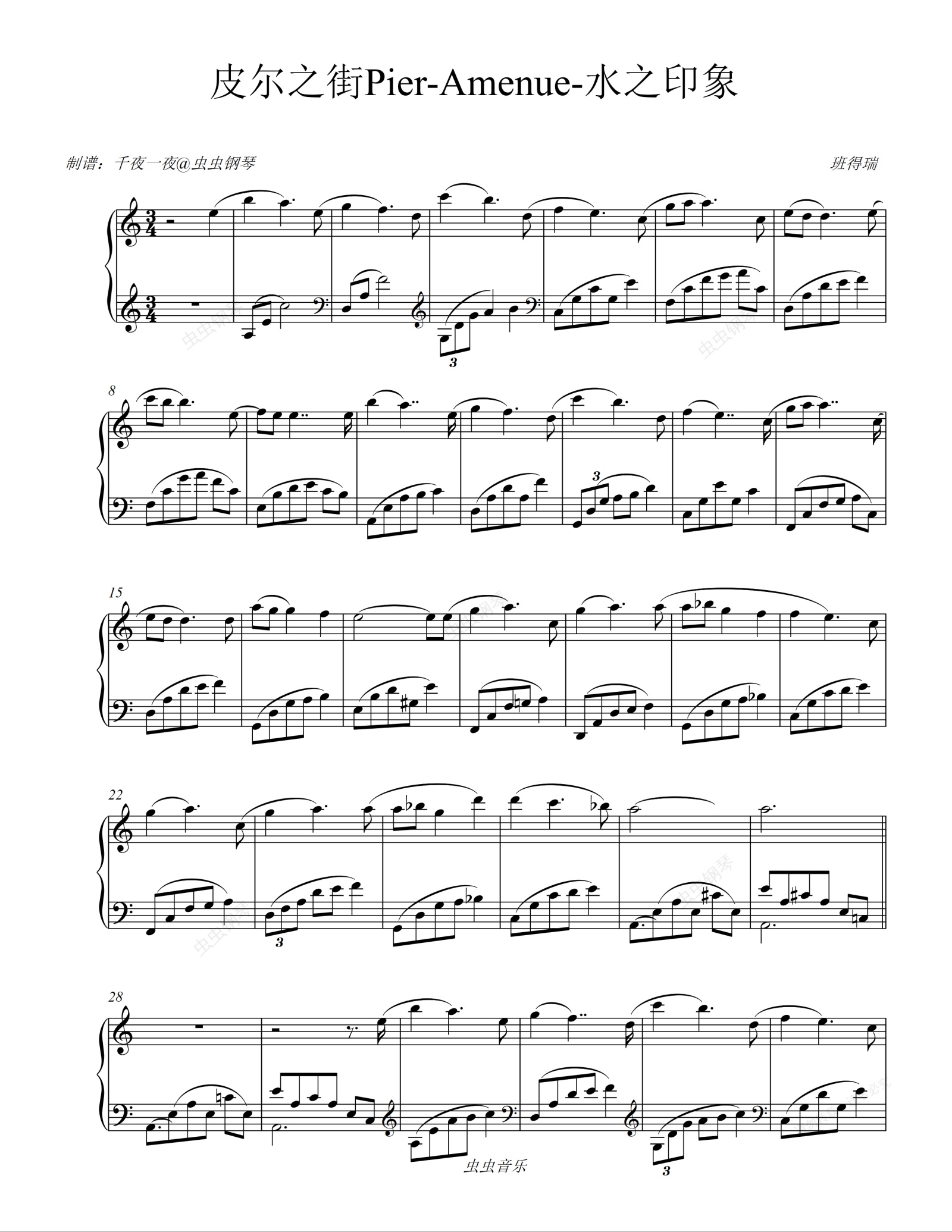 钢琴谱:皮尔之街Pier-Amenue--水之印象-班得瑞