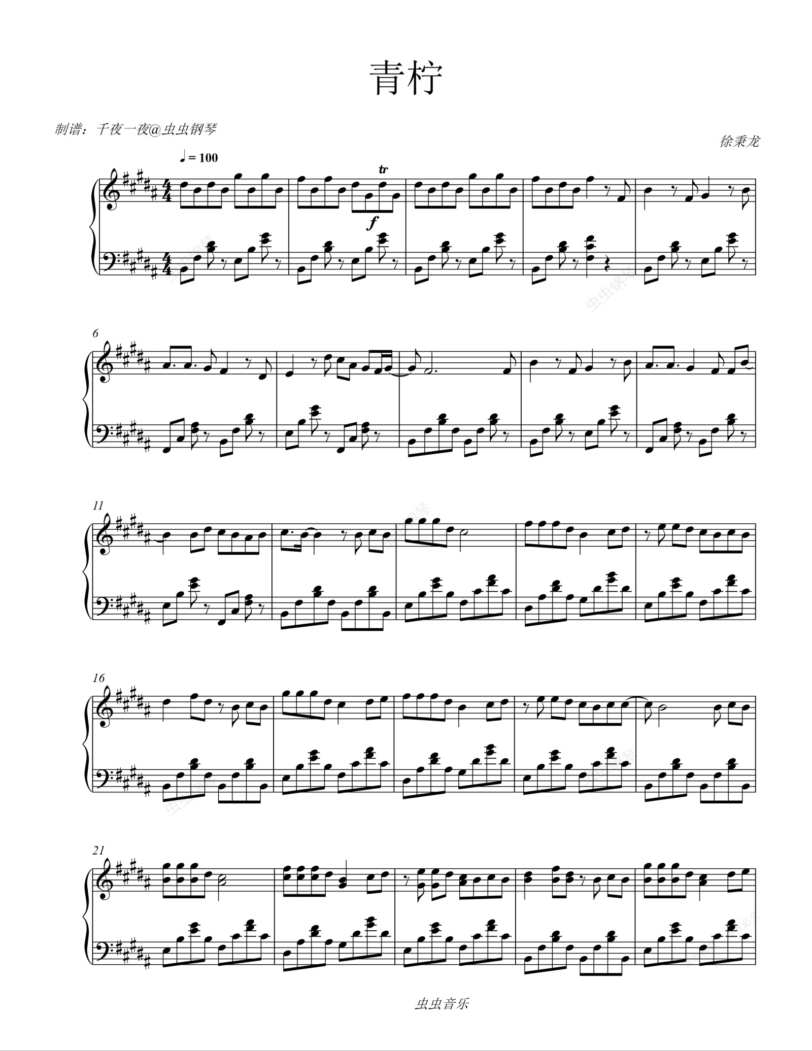 钢琴谱:《青柠》徐秉龙/桃十五~我明了害羞地彷徨,仿若青柠的悠扬