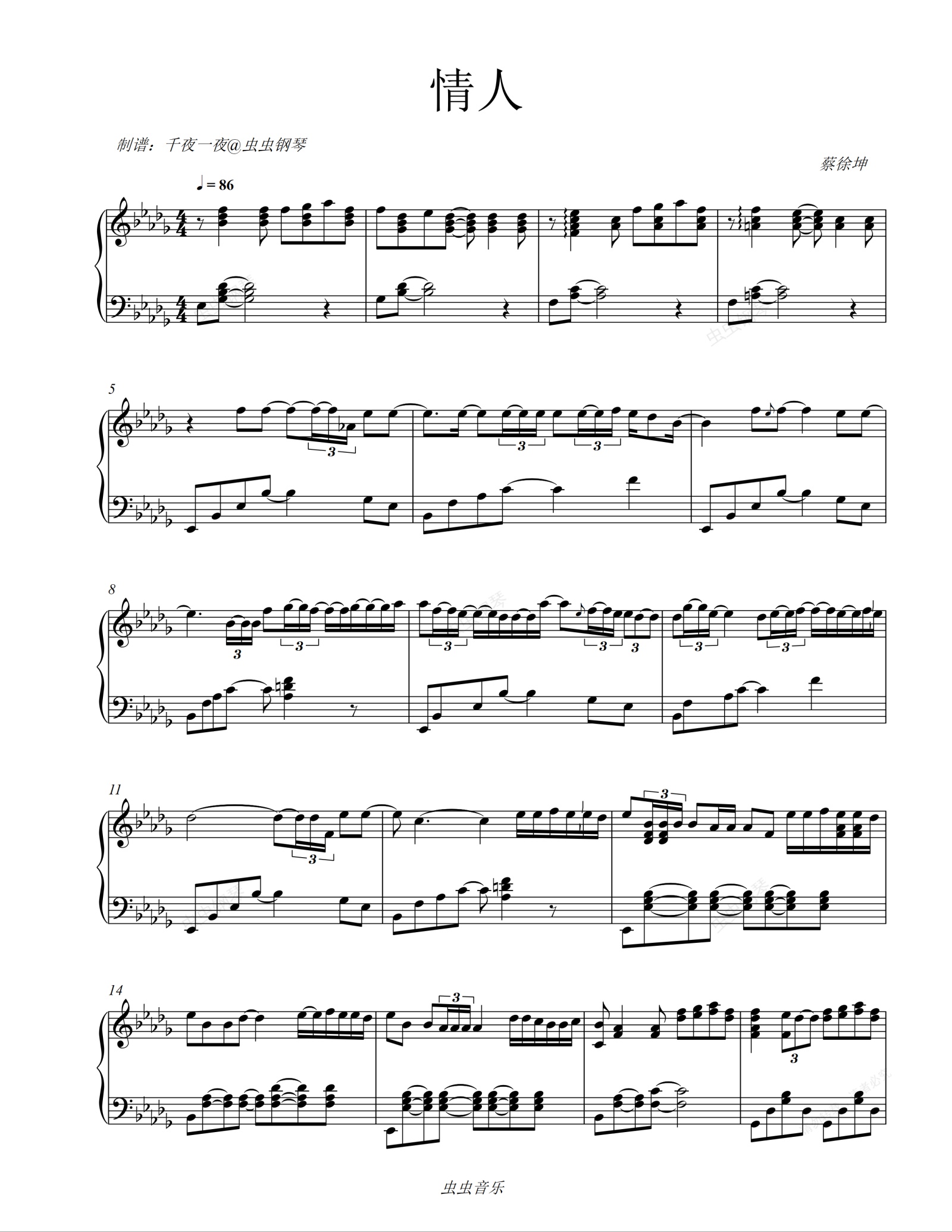 钢琴谱:情人-蔡徐坤新歌歌词成了00后撩妹金句