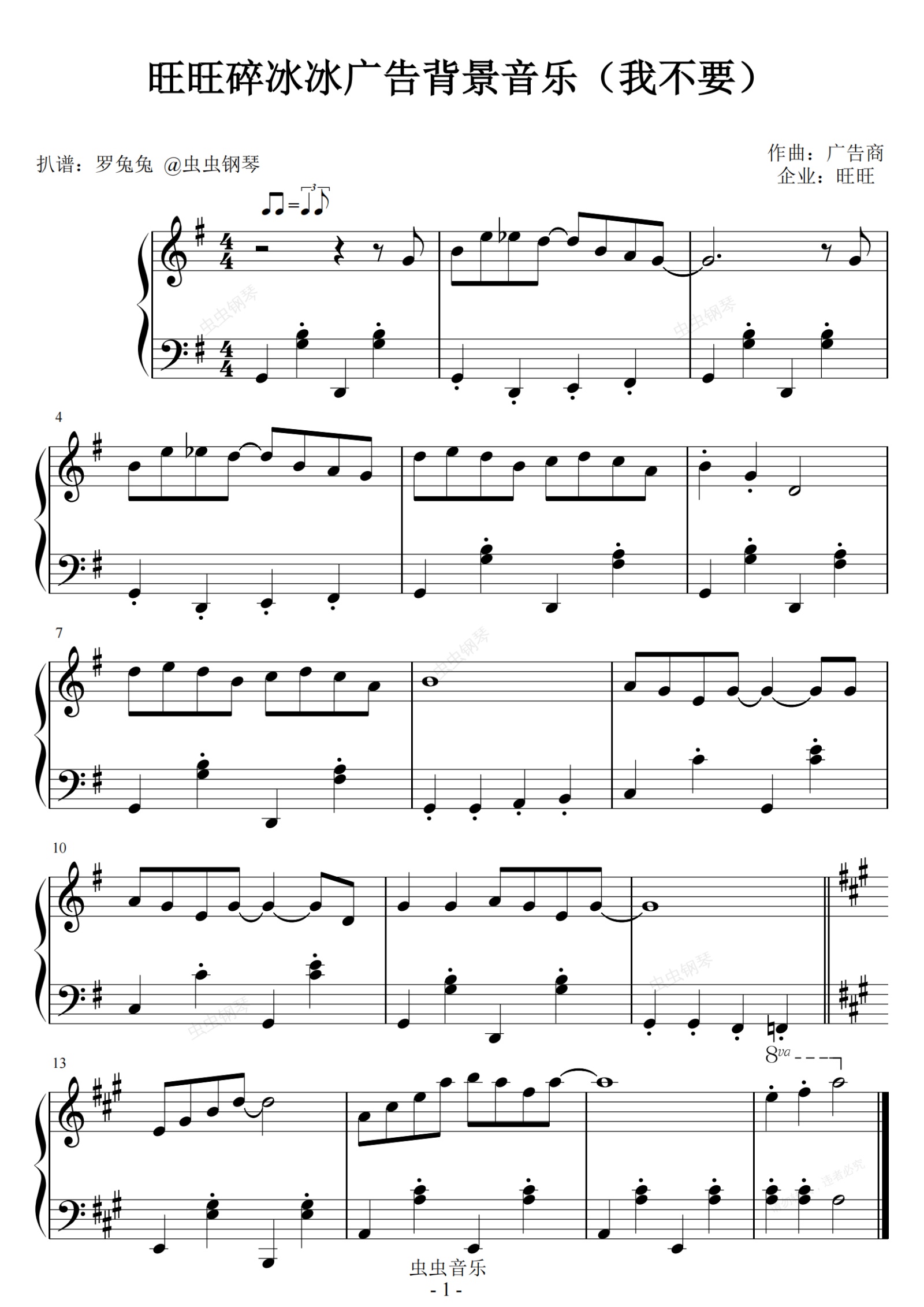 钢琴谱:旺旺碎冰冰广告背景音乐(我不要)
