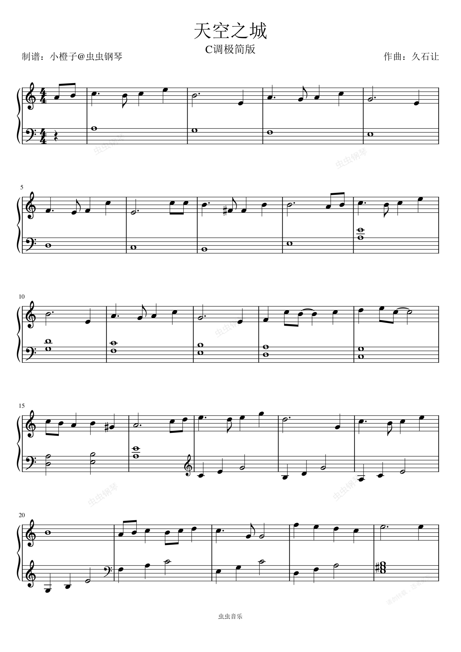 钢琴谱:⟪天空之城⟫C大调极简版+初学入门