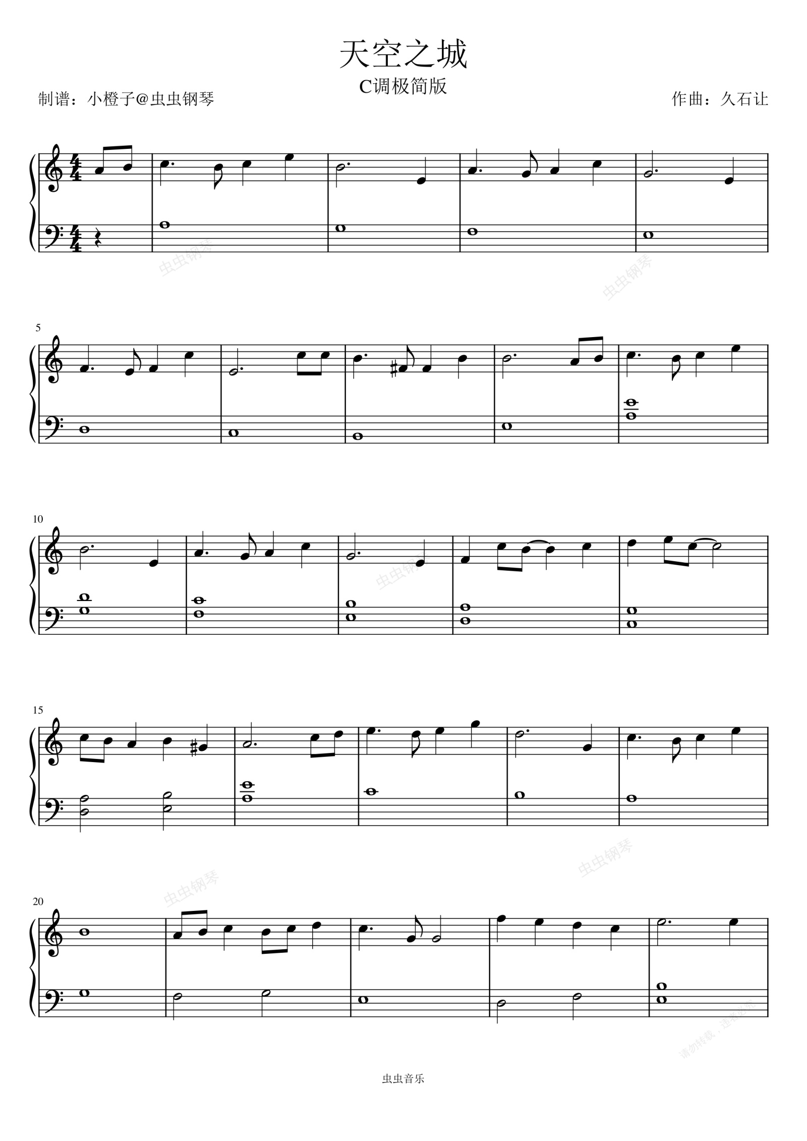 钢琴谱:⟪天空之城⟫C调巨简单版+左手单音