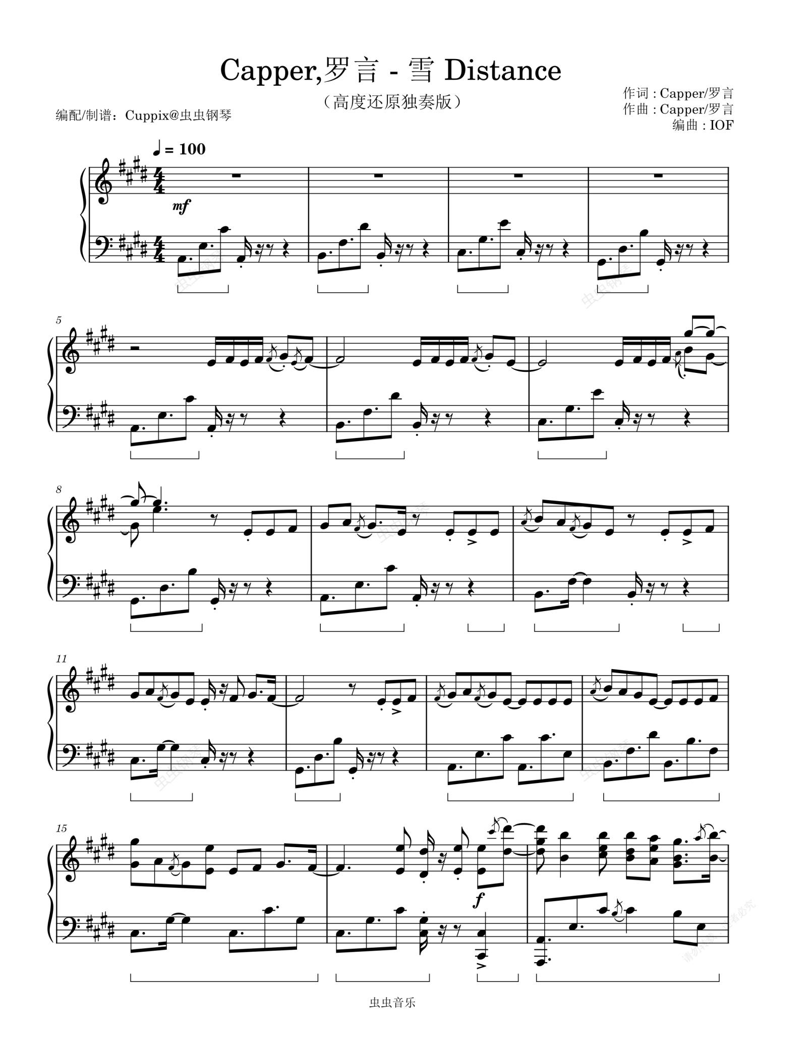 钢琴谱:《雪Distance》高度还原独奏版(Capper,罗言 雪 Distance)