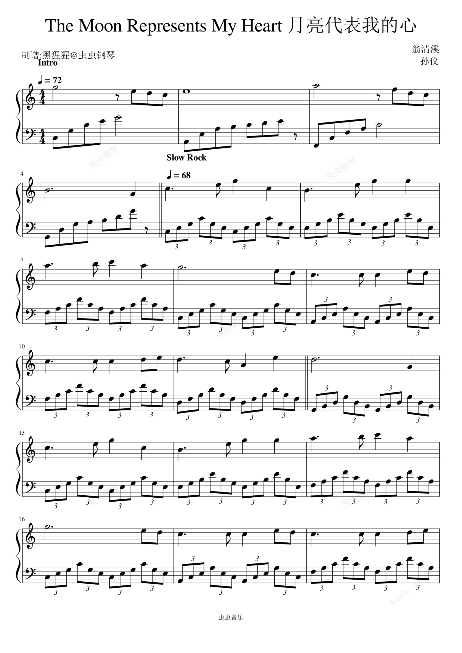 钢琴谱:陈芬兰-C调 《月亮代表我的心》