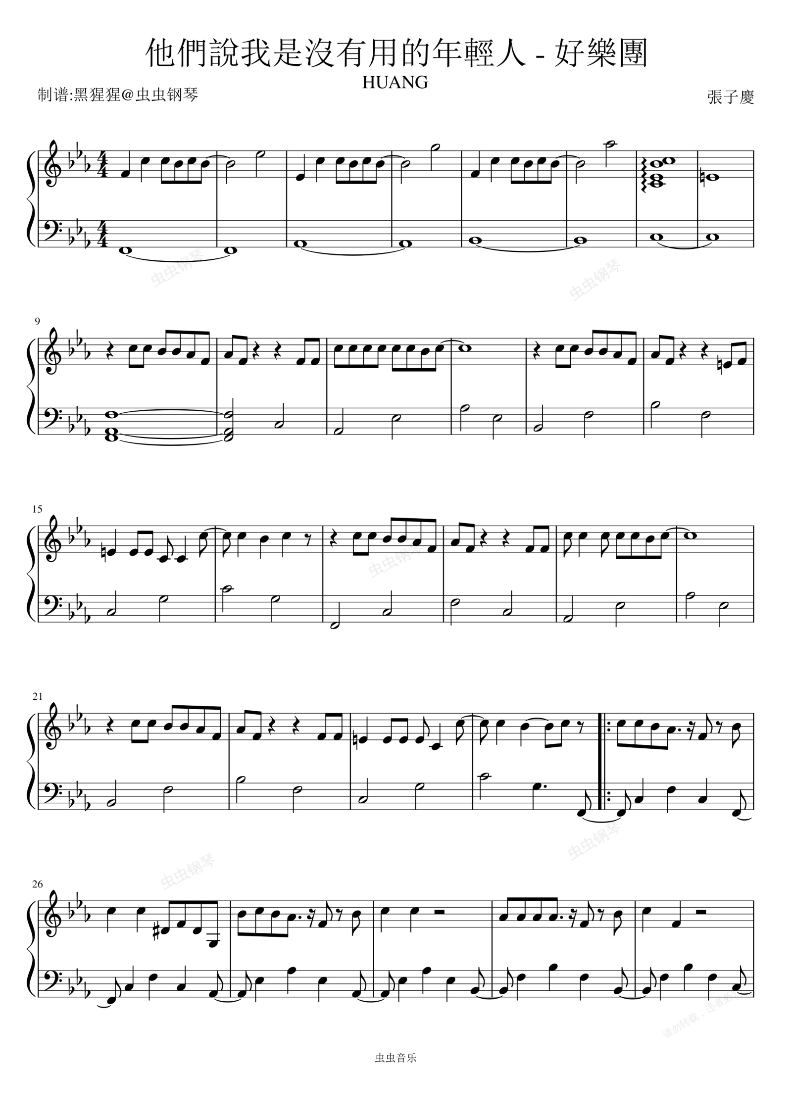 钢琴谱:好乐团-Eb调 《他们说我是没有用的年轻人》