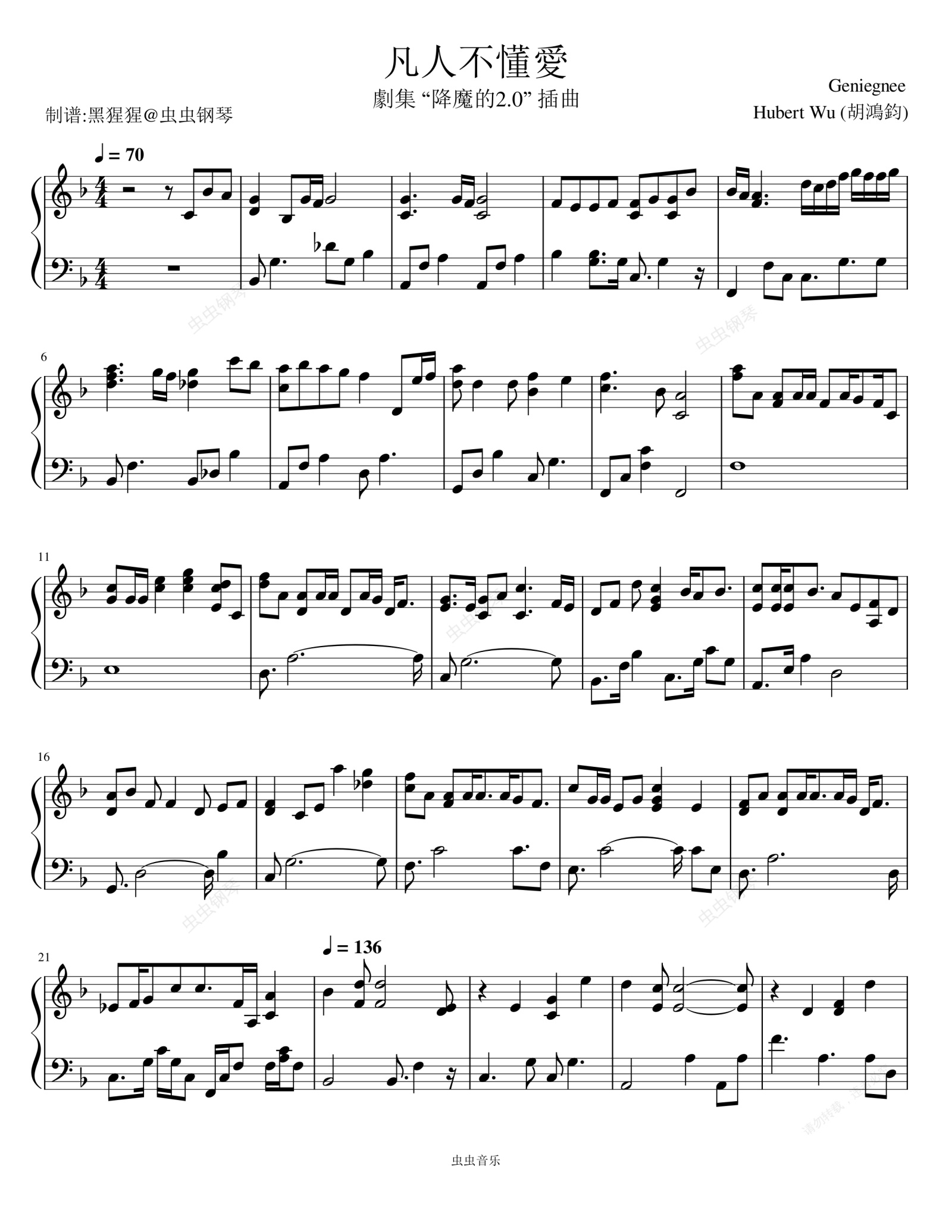 钢琴谱:胡鸿钧-F调 《凡人不懂爱》