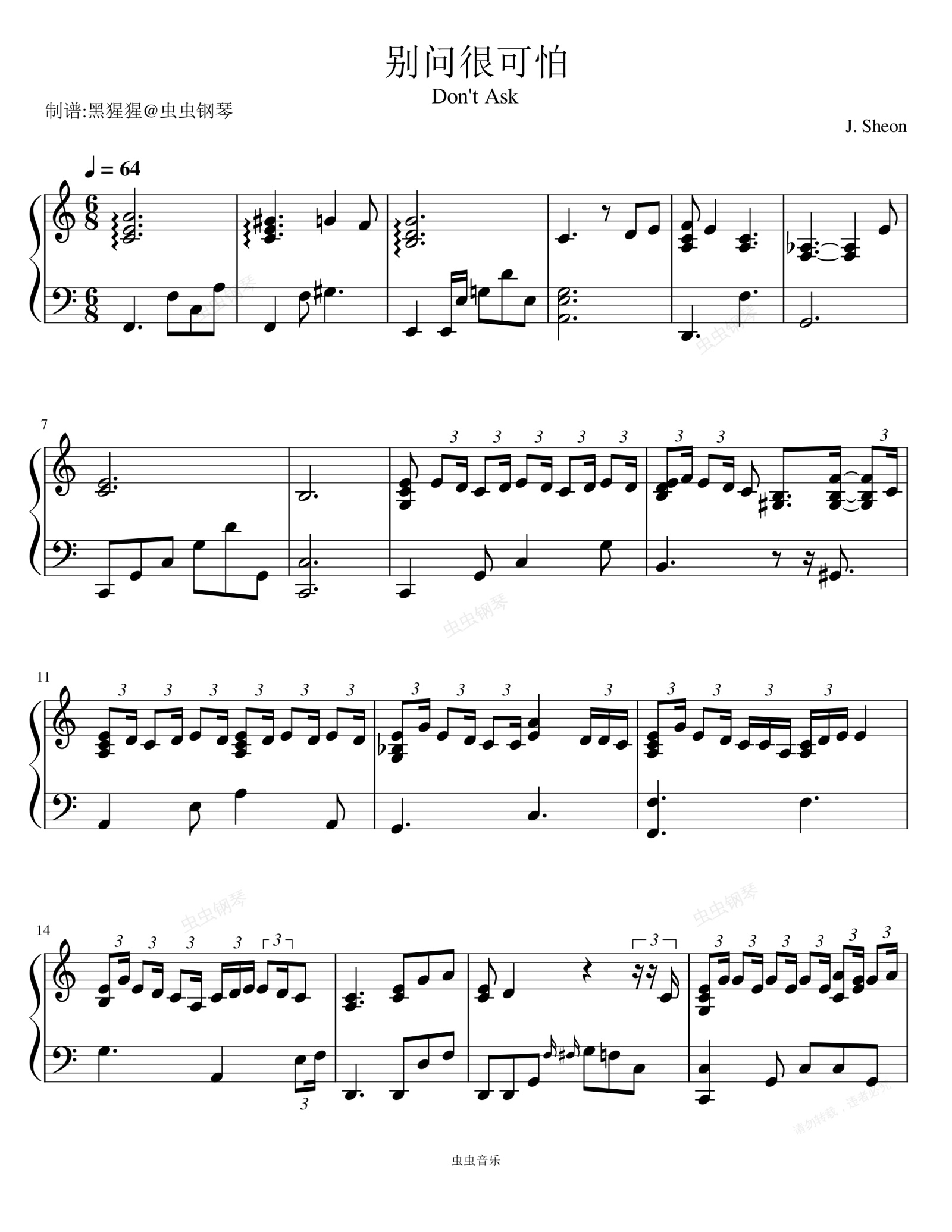 钢琴谱:J.Sheon-C调 《别问很可怕》