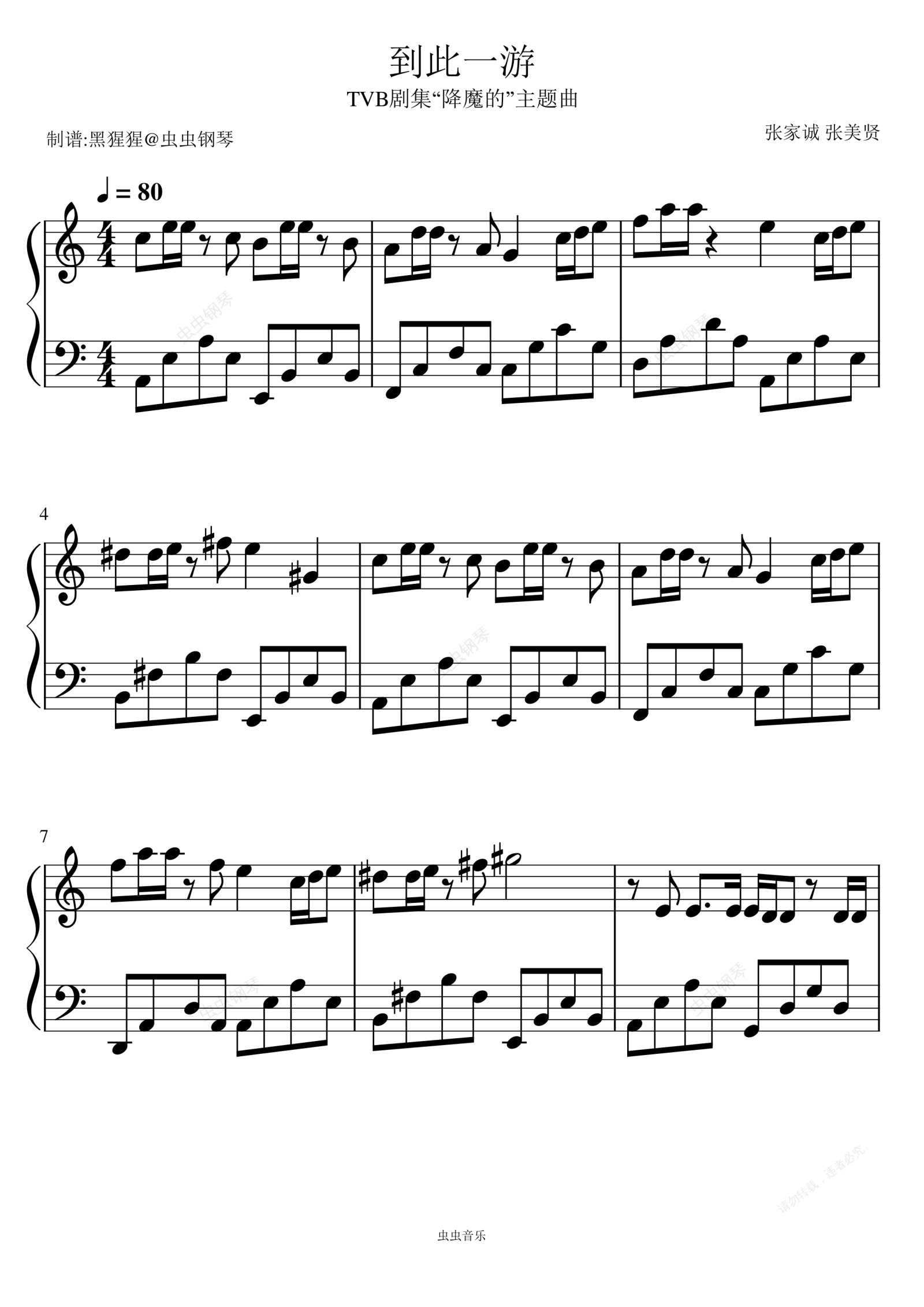 钢琴谱:胡鸿钧-C调 《到此一游》