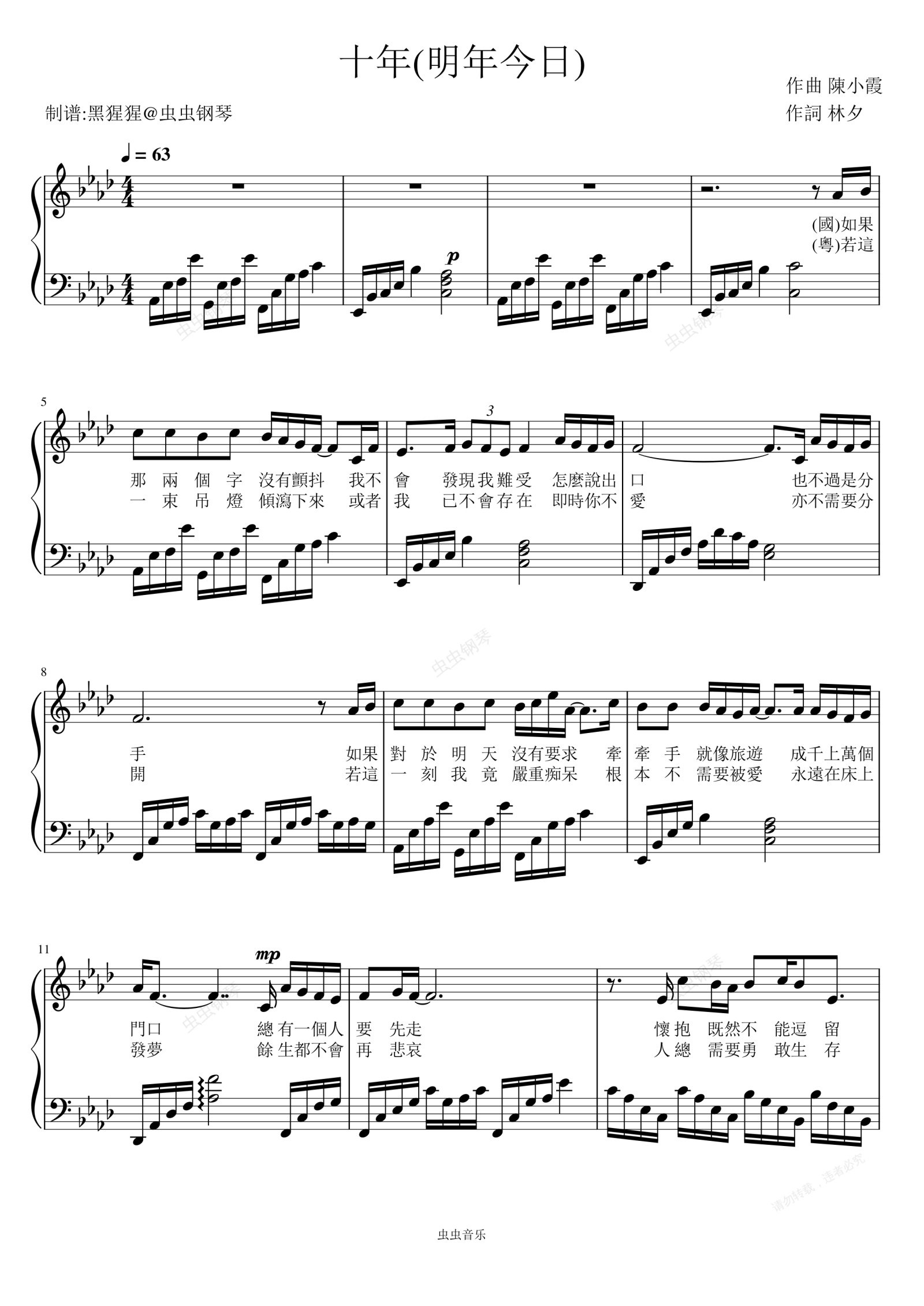 钢琴谱:陈奕迅-Ab调 《十年(明年今日)》