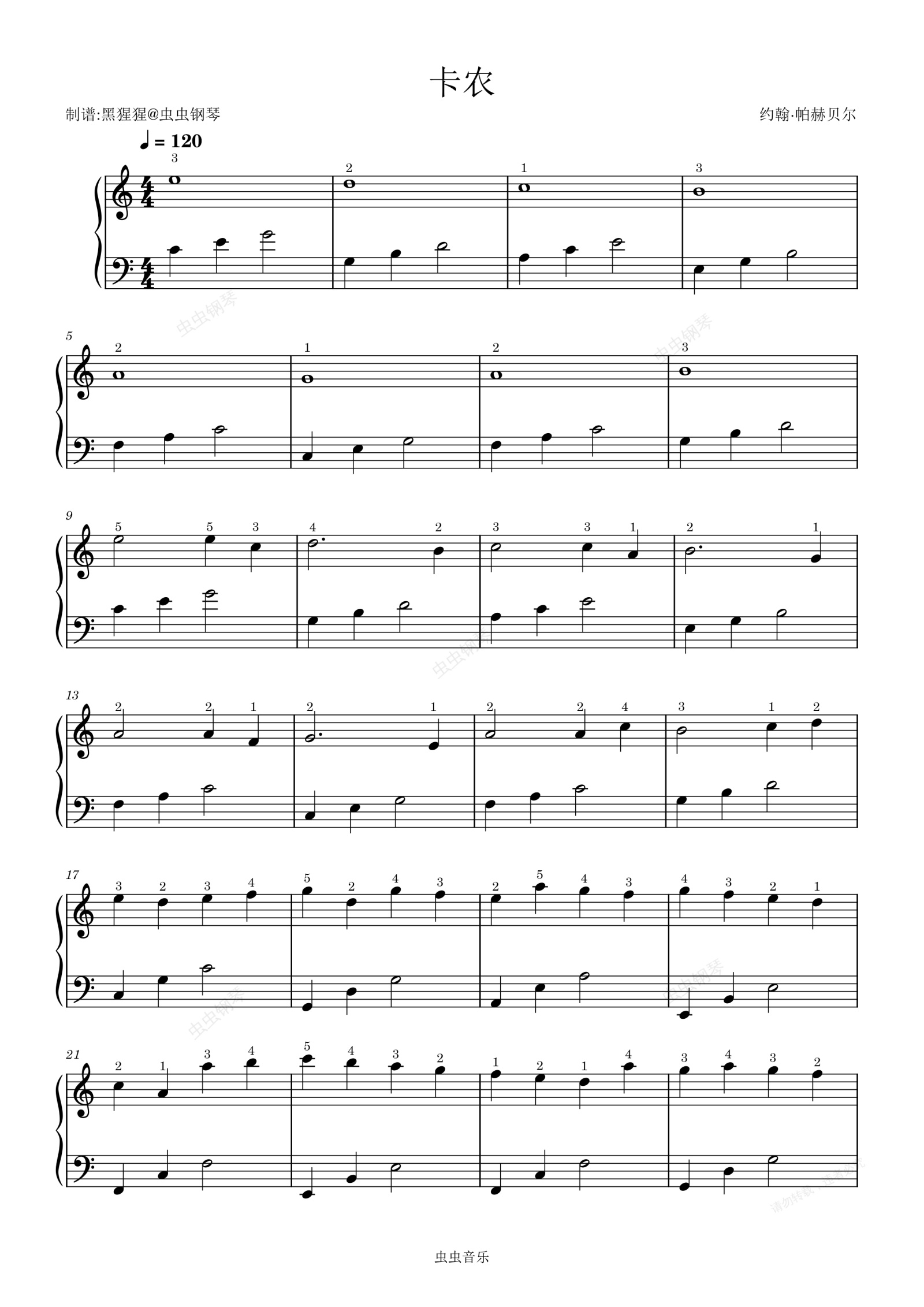 钢琴谱:约翰 帕赫贝尔-C调 《卡农》