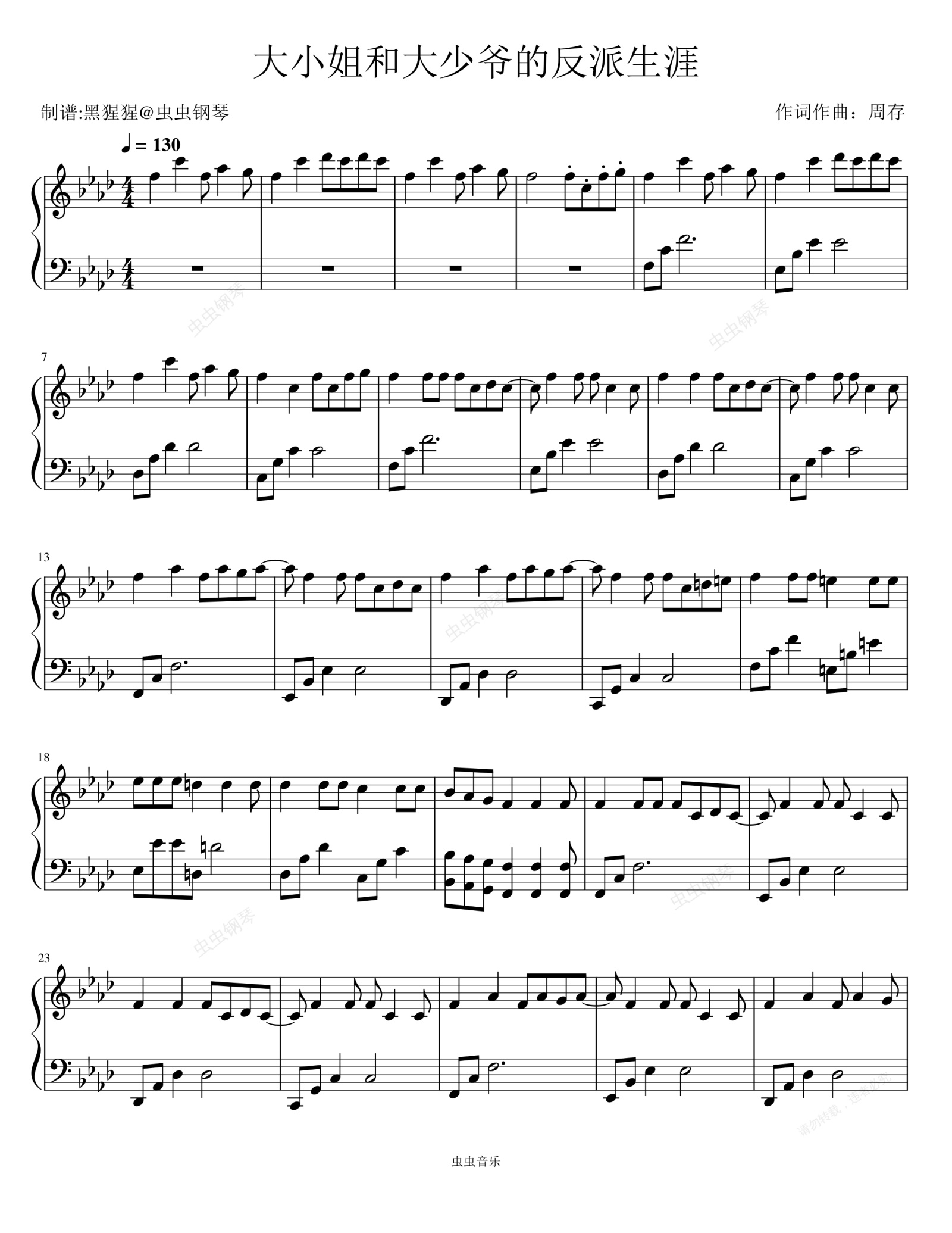钢琴谱:洛天依-Ab调 《大小姐和大少爷的反派生涯》