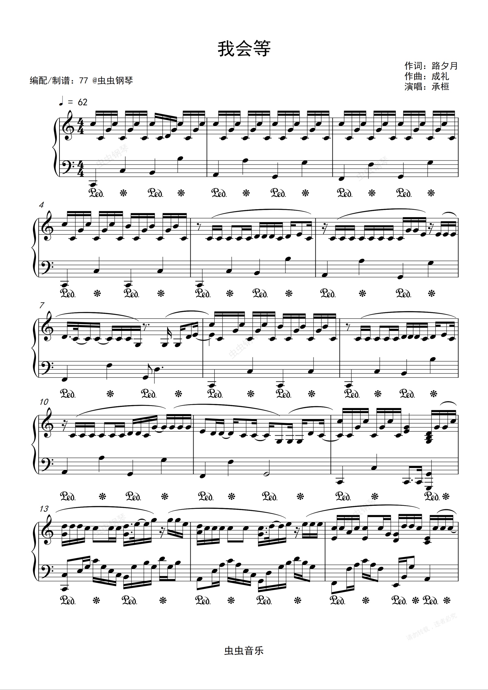 钢琴谱:承桓 - 《我会等》C调 钢琴独奏谱