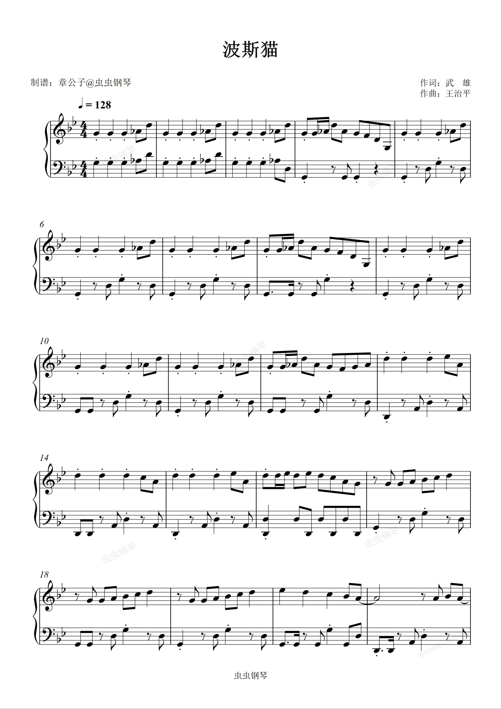 钢琴谱:波斯猫 - S.H.E 简易版 原调bB(g小调)