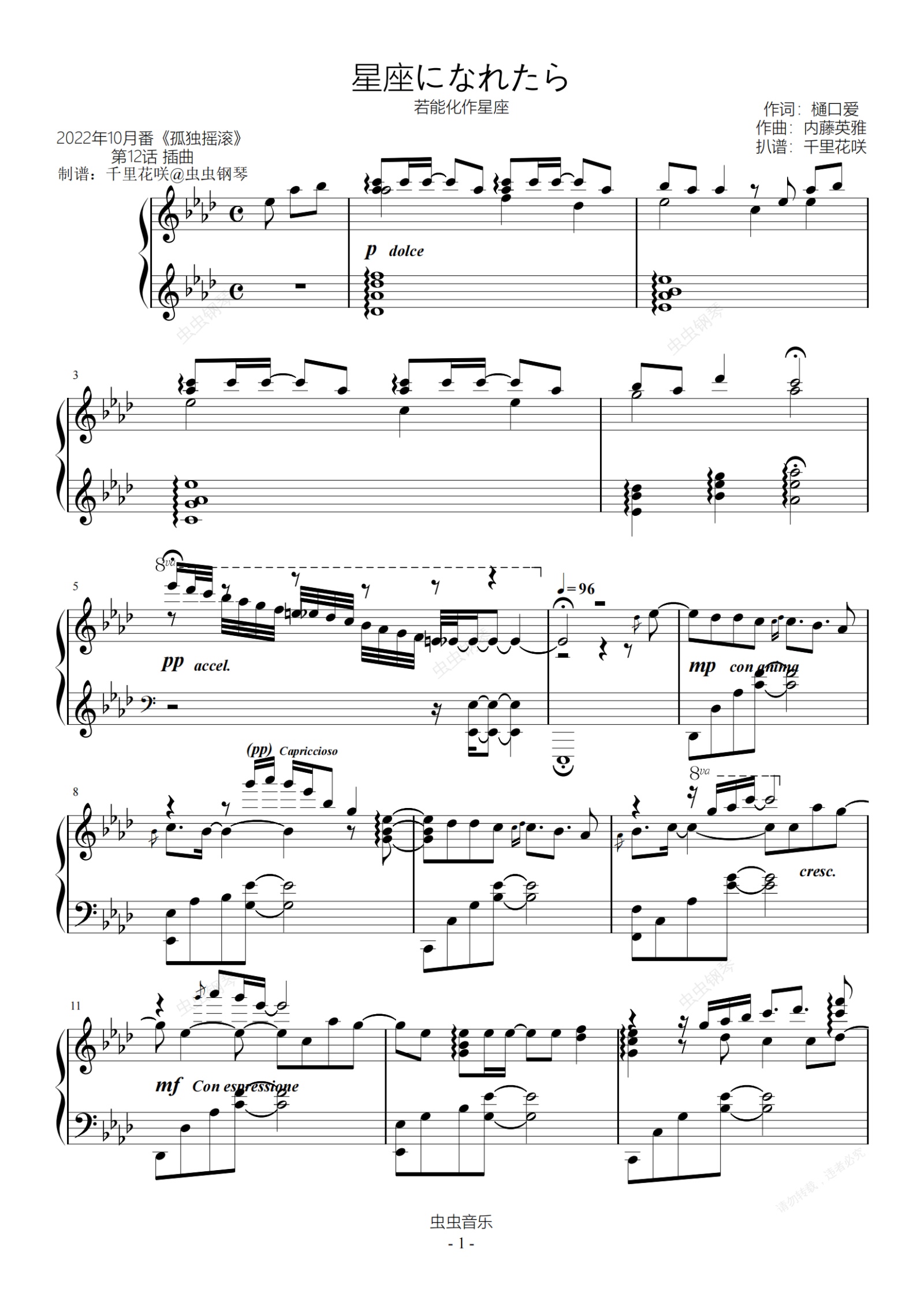 钢琴谱:【经典番】孤独摇滚-插曲~星座になれたら(若能化为星座)