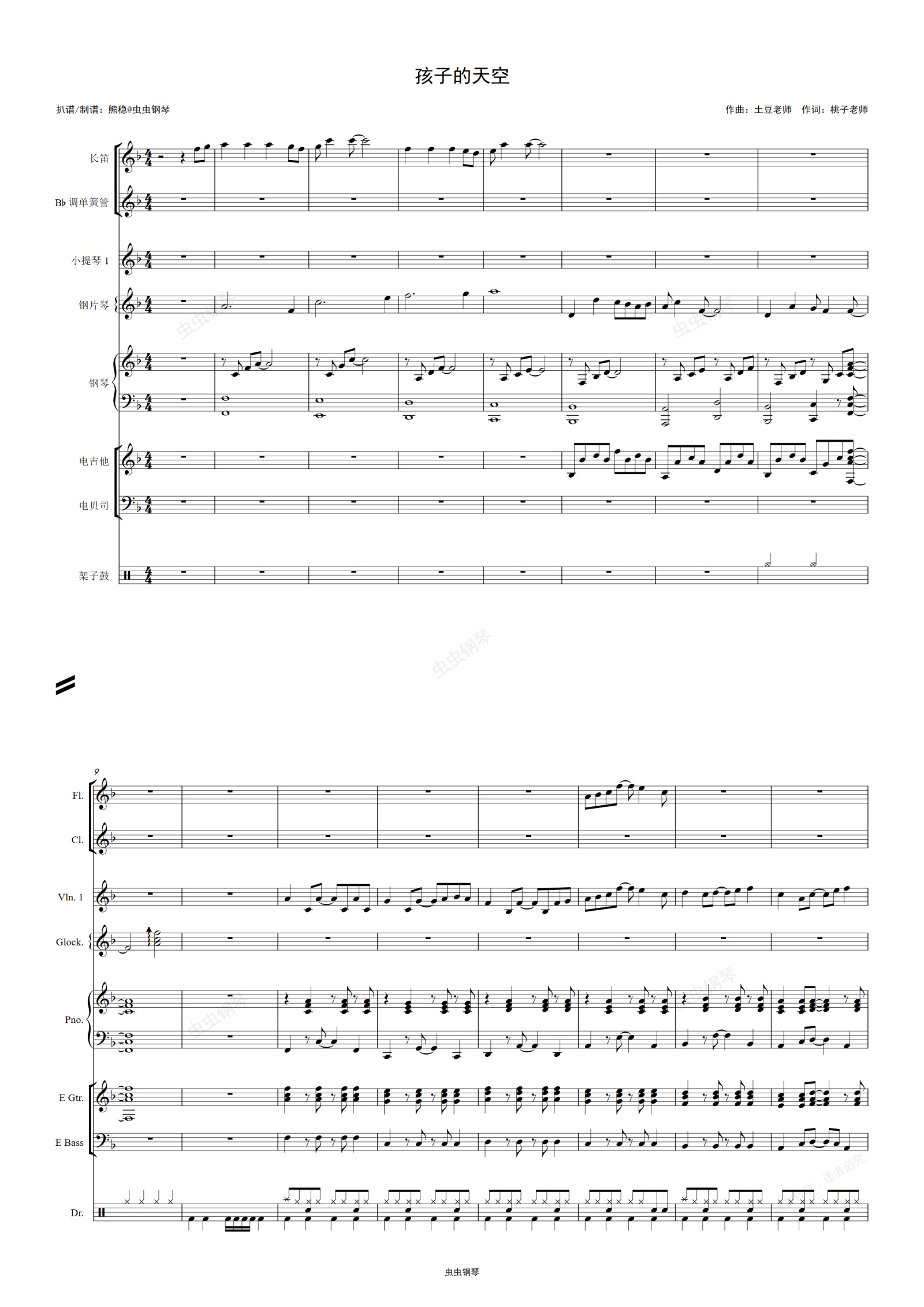 钢琴谱:《孩子的天空》总谱/扒谱/编配/制谱
