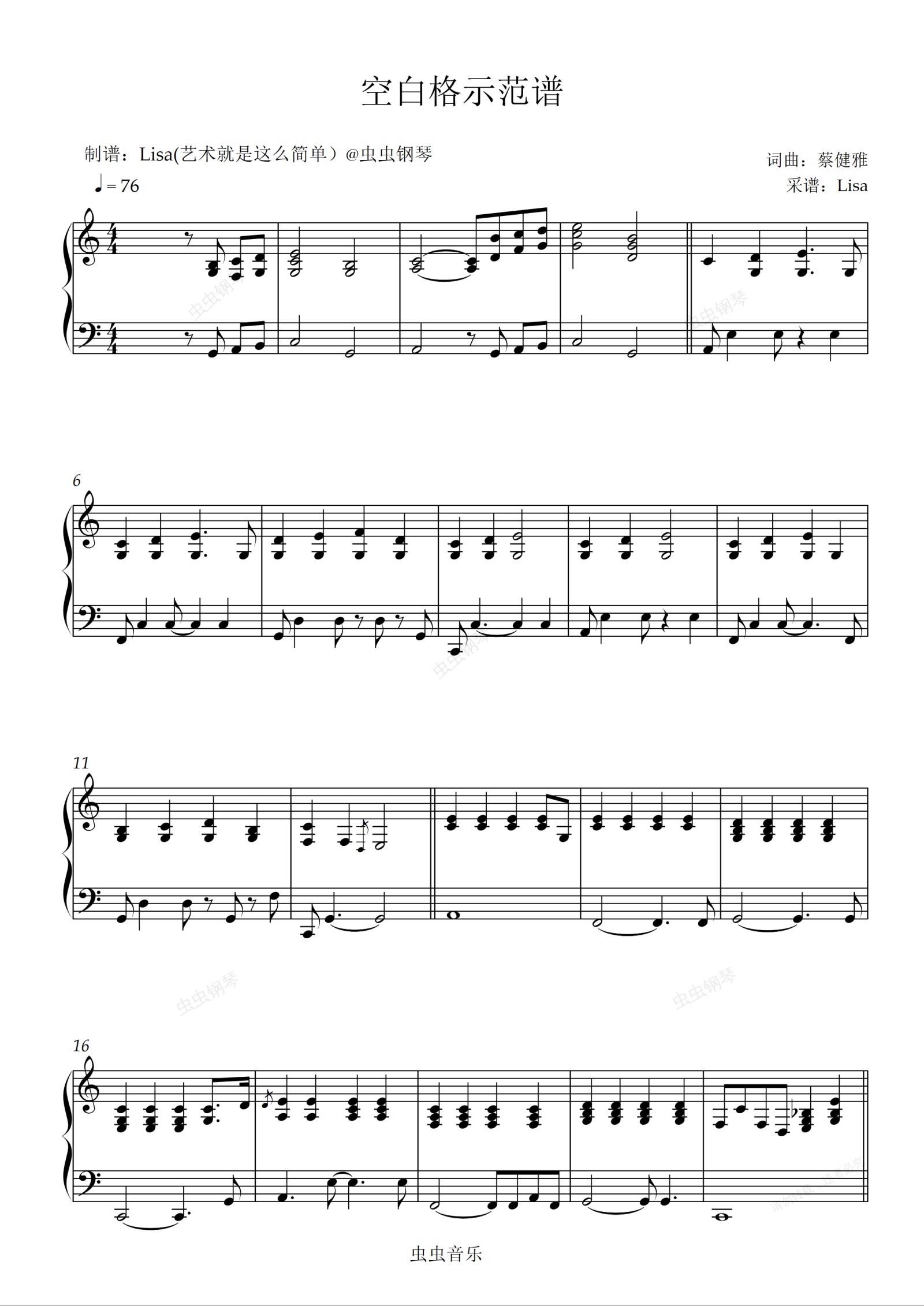 钢琴谱:空白格原版伴奏(前奏至间奏)