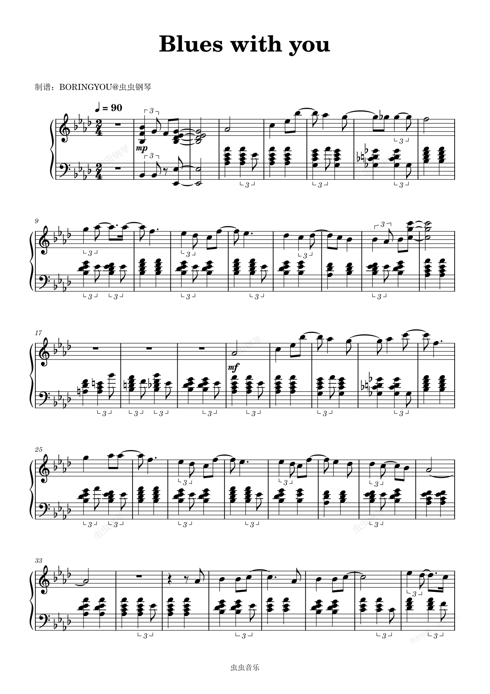 钢琴谱:《Blues with you》明日方舟四周年印象曲 莱茵生命散伙曲