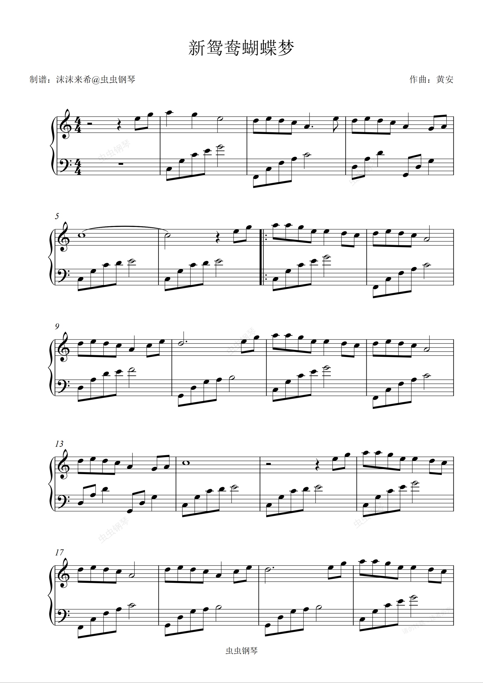钢琴谱:《新鸳鸯蝴蝶梦》C调,初学者