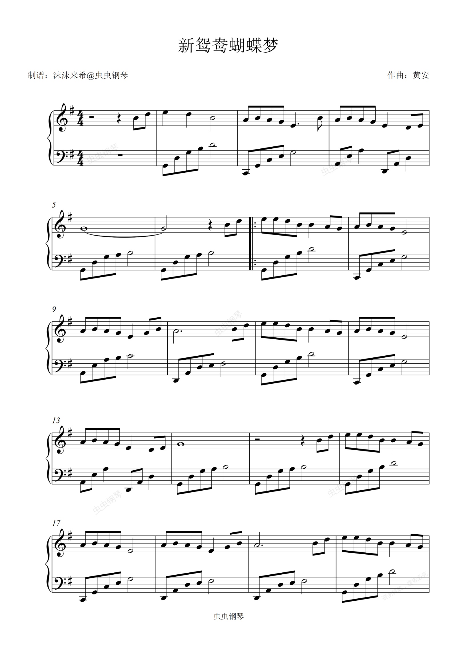 钢琴谱:《新鸳鸯蝴蝶梦》G调 简单