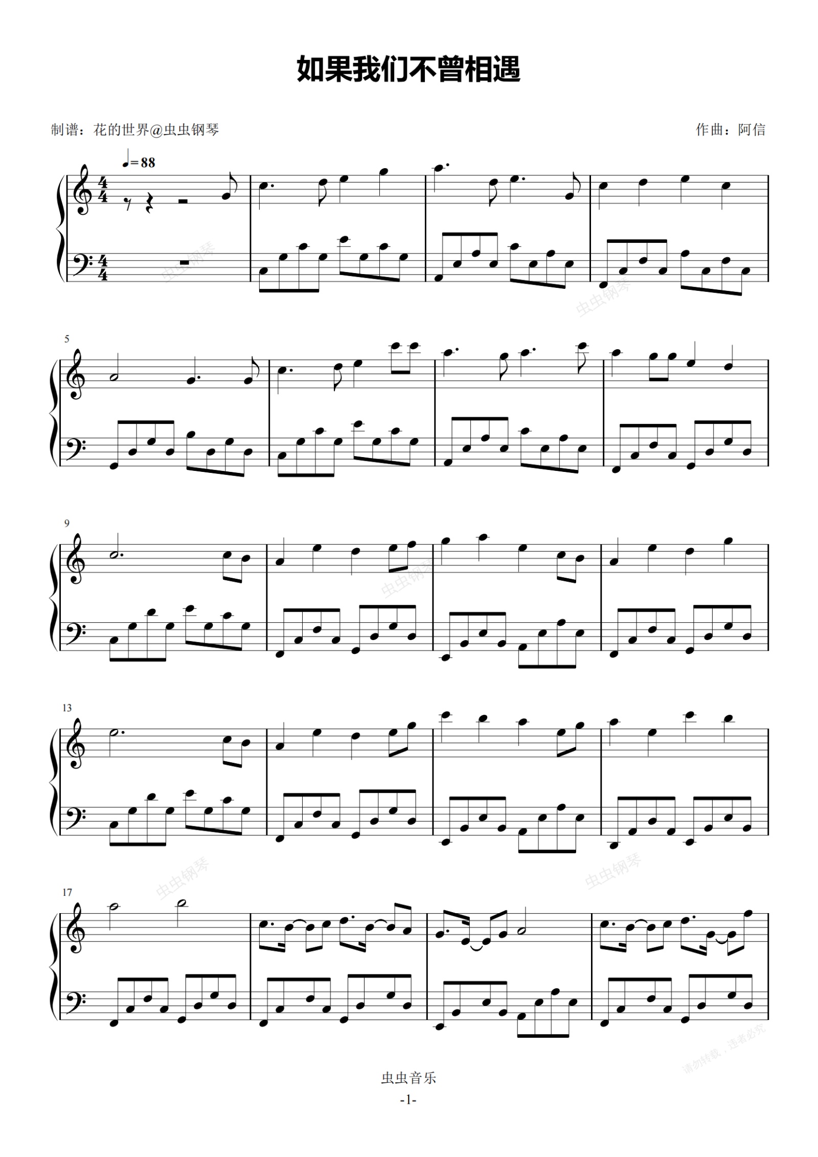 钢琴谱:如果我们不曾相遇 五月天 C调简易版