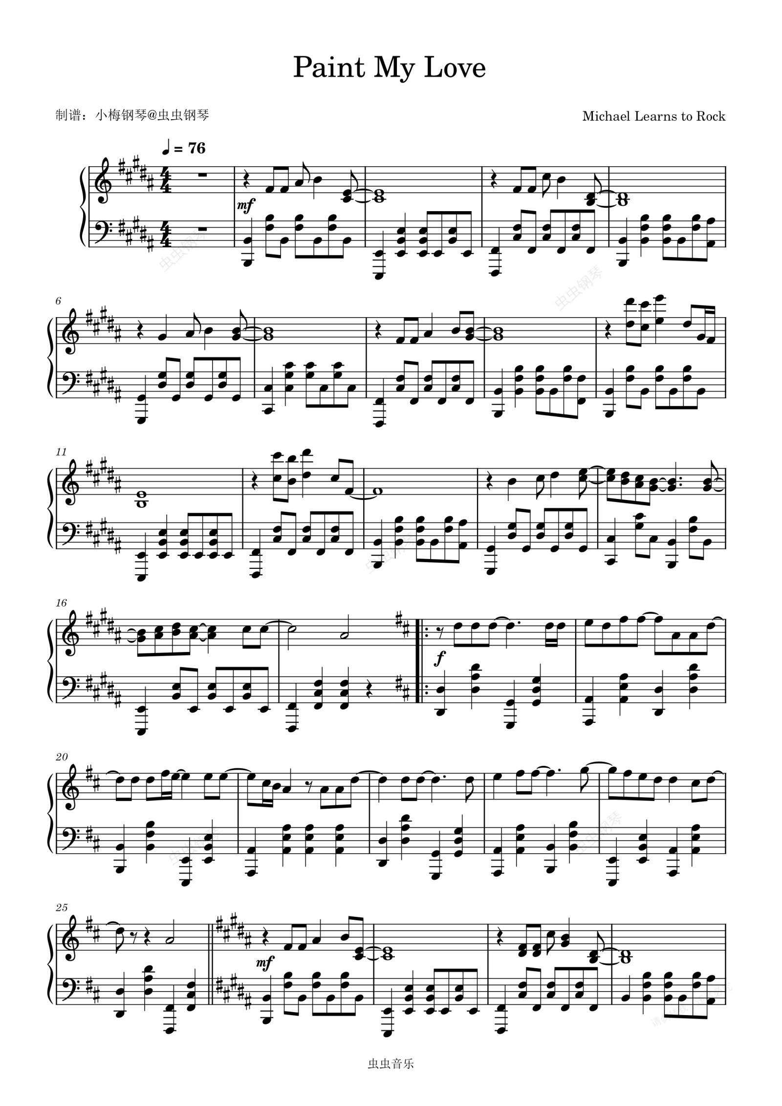 钢琴谱:Paint My Love - Michael Learns To Rock (迈克学摇滚)