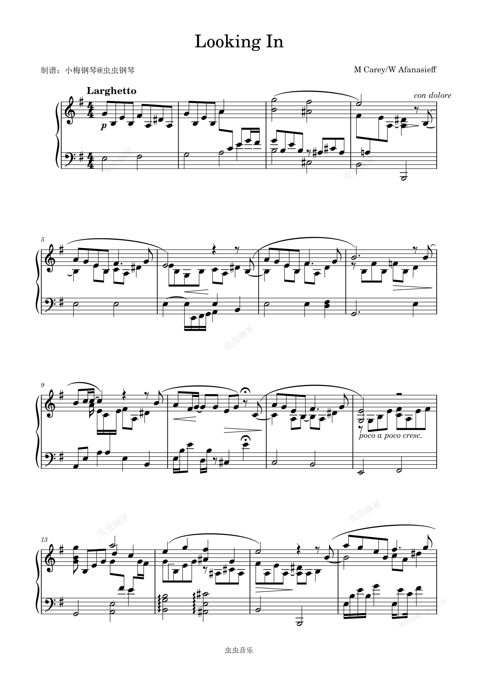 钢琴谱:Looking In - Mariah Carey