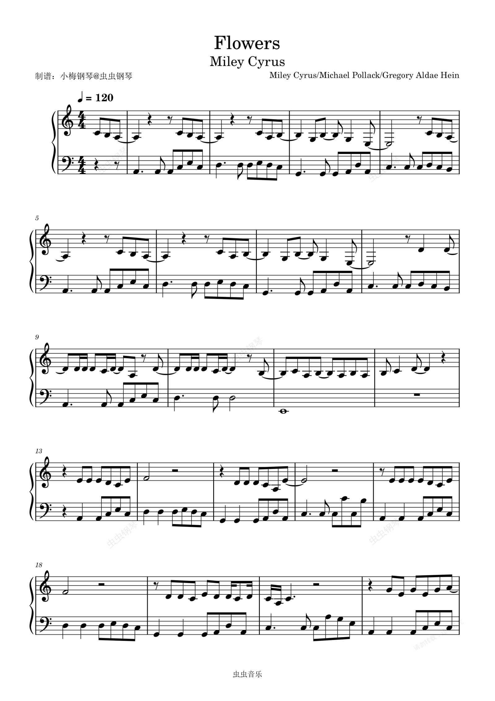 钢琴谱:Flowers - Miley Cyrus (麦莉·赛勒斯)