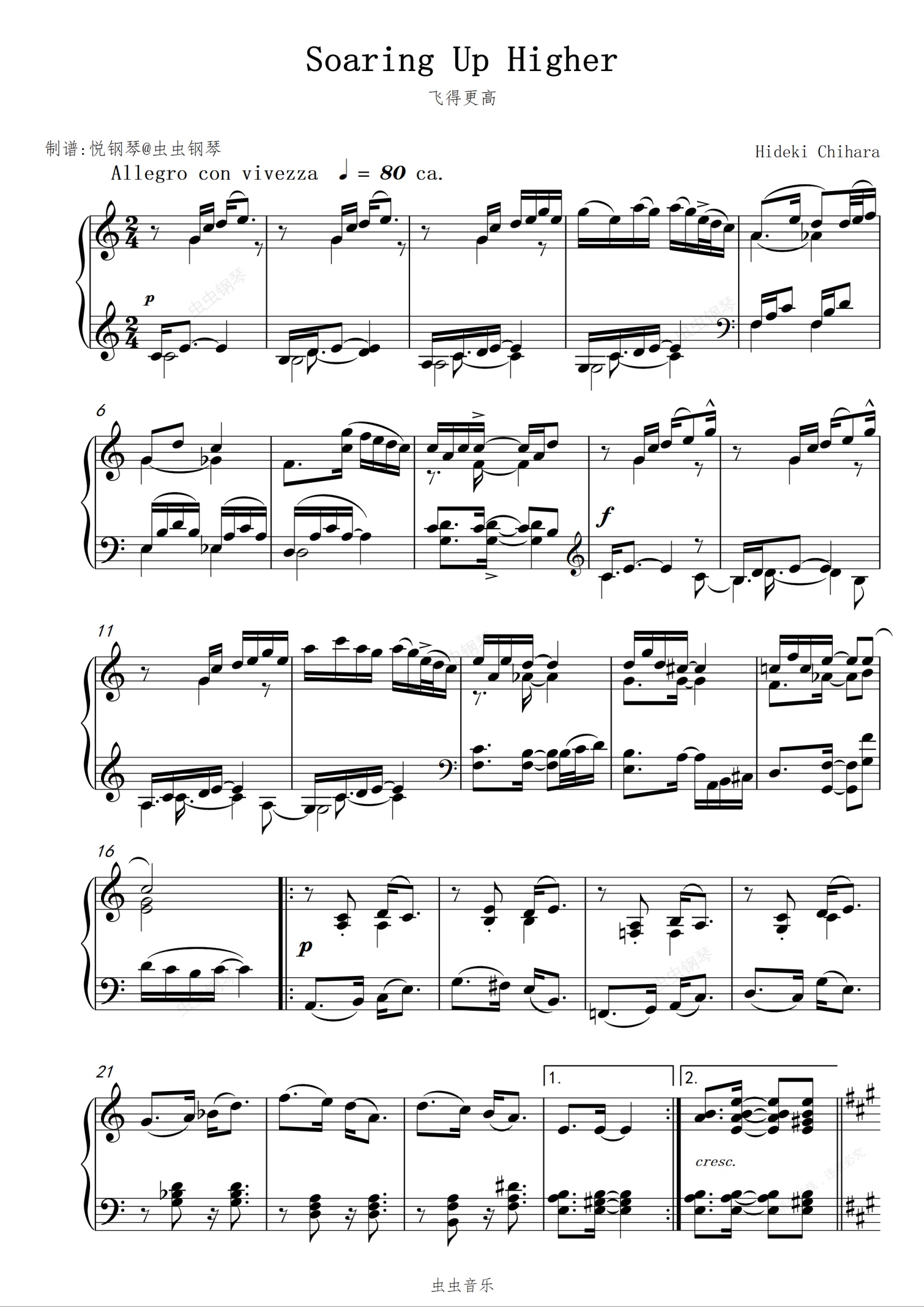 钢琴谱:飞得更高//Soaring Up Higher【唯美-治愈】星月夜