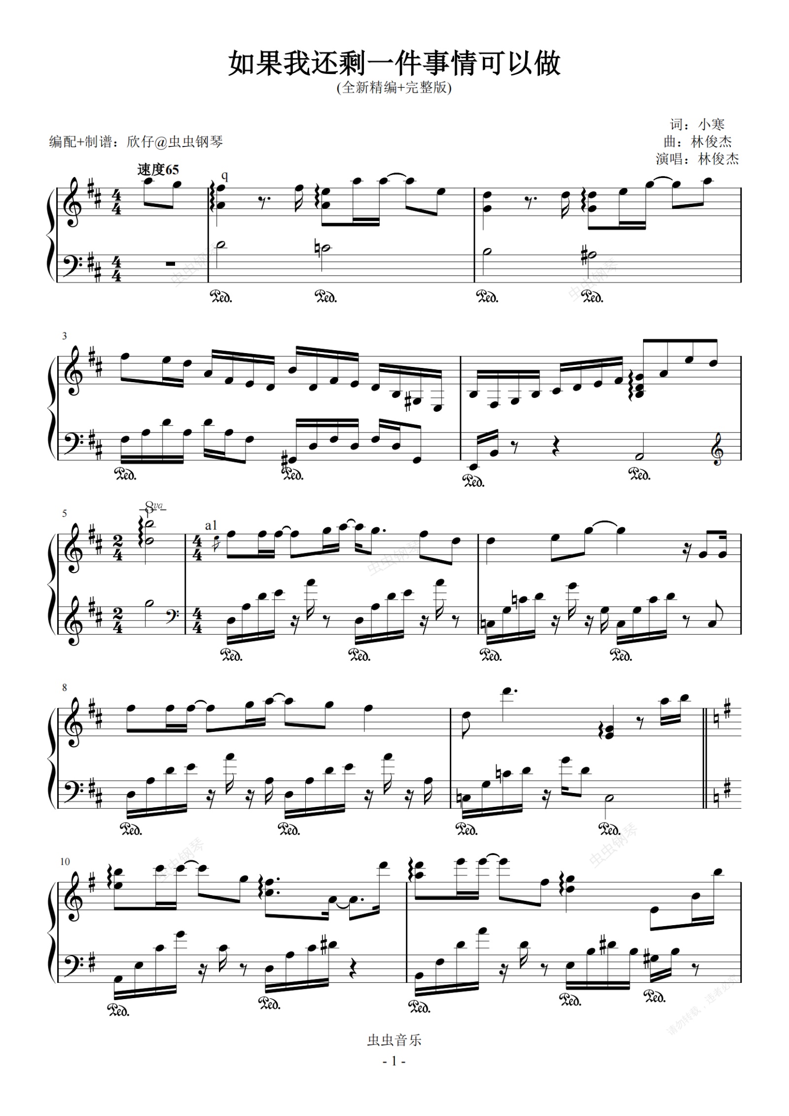 钢琴谱:林俊杰-G《如果我还剩一件事情可以做》(全新精编+完整版)