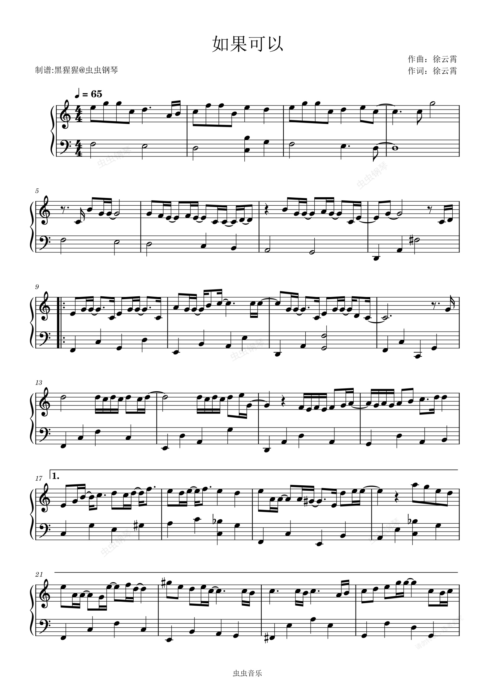 钢琴谱:胡夏-C调 《如果可以(简单版)》