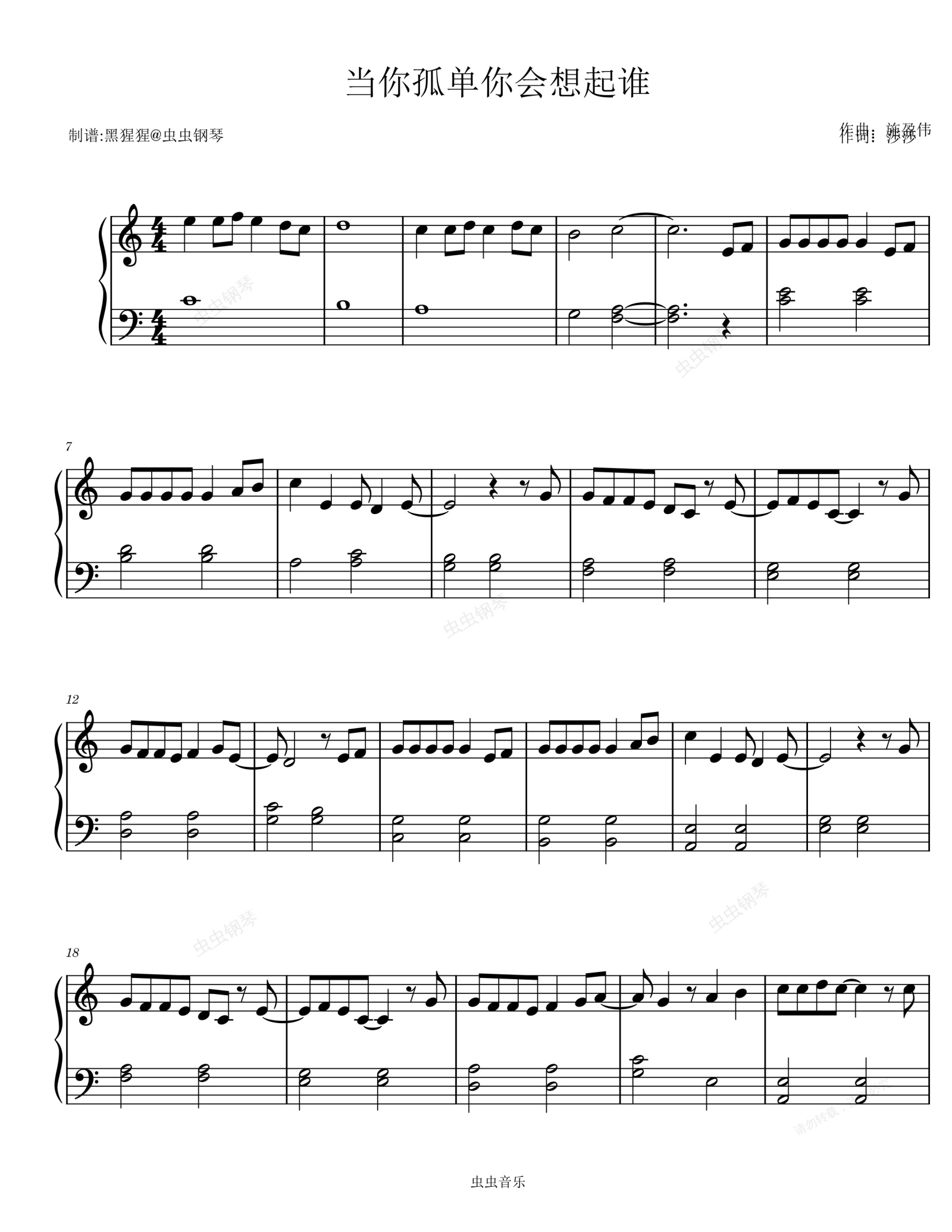 钢琴谱:NBC-C调 《当你孤单你会想起谁》