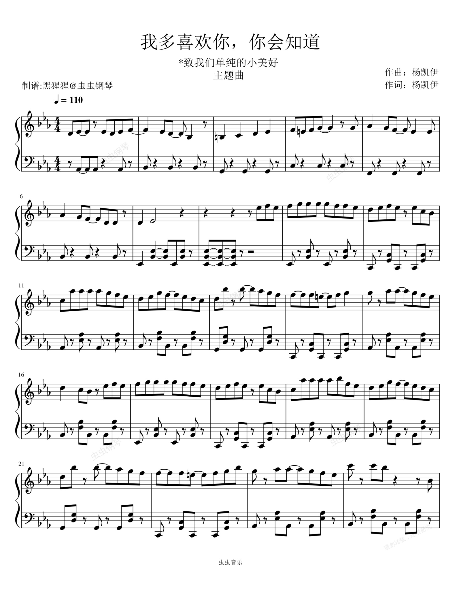 钢琴谱:王俊琪-Eb调 《我多喜欢你,你会知道》