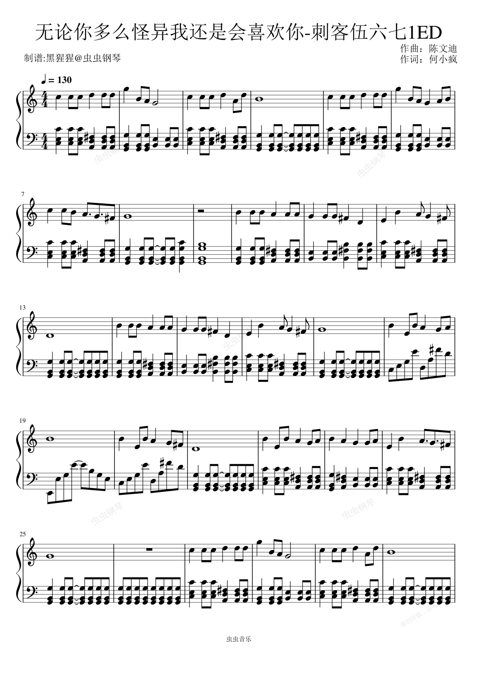 钢琴谱:江惠莲-C调 《无论你多么怪异我还是会喜欢你》