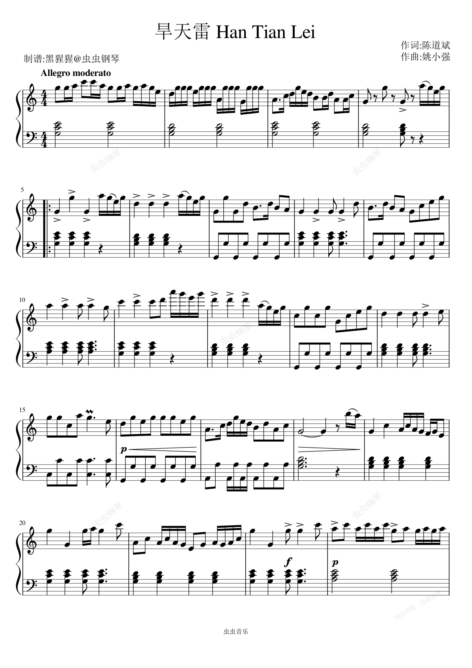 钢琴谱:欧阳铭芮-C调 《旱天雷》