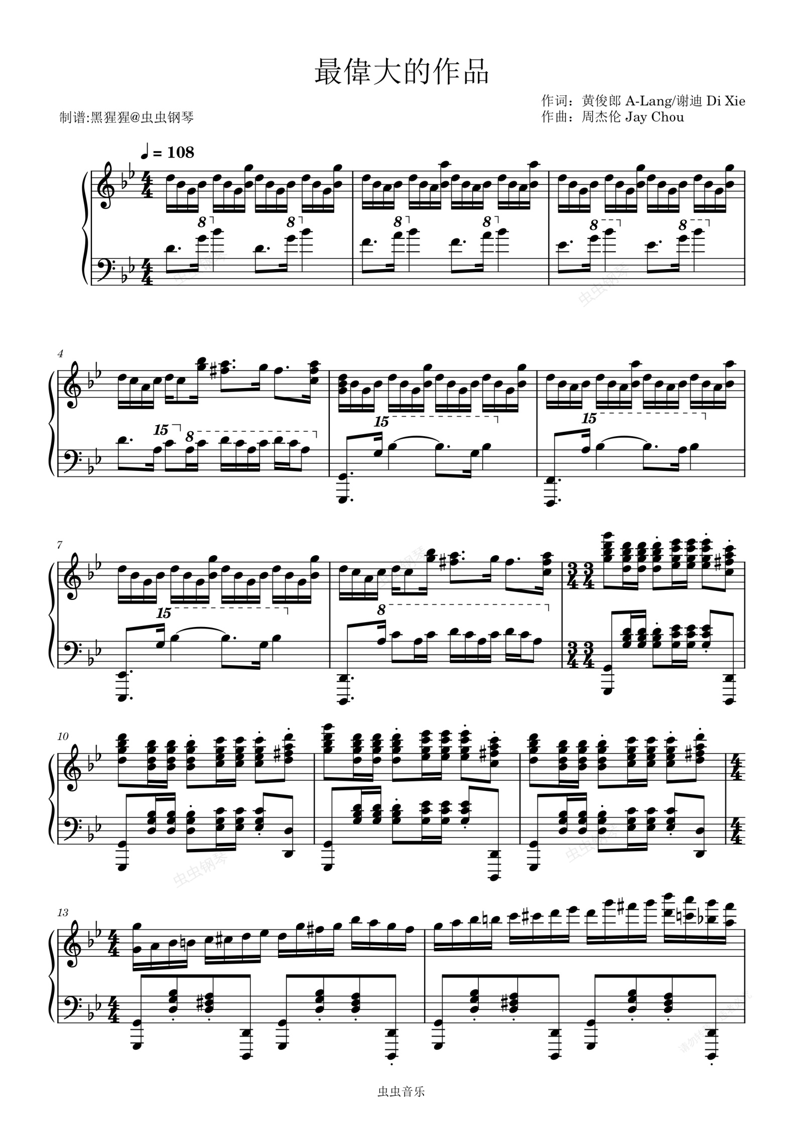 钢琴谱:周杰伦-Bb调 《最伟大的作品》
