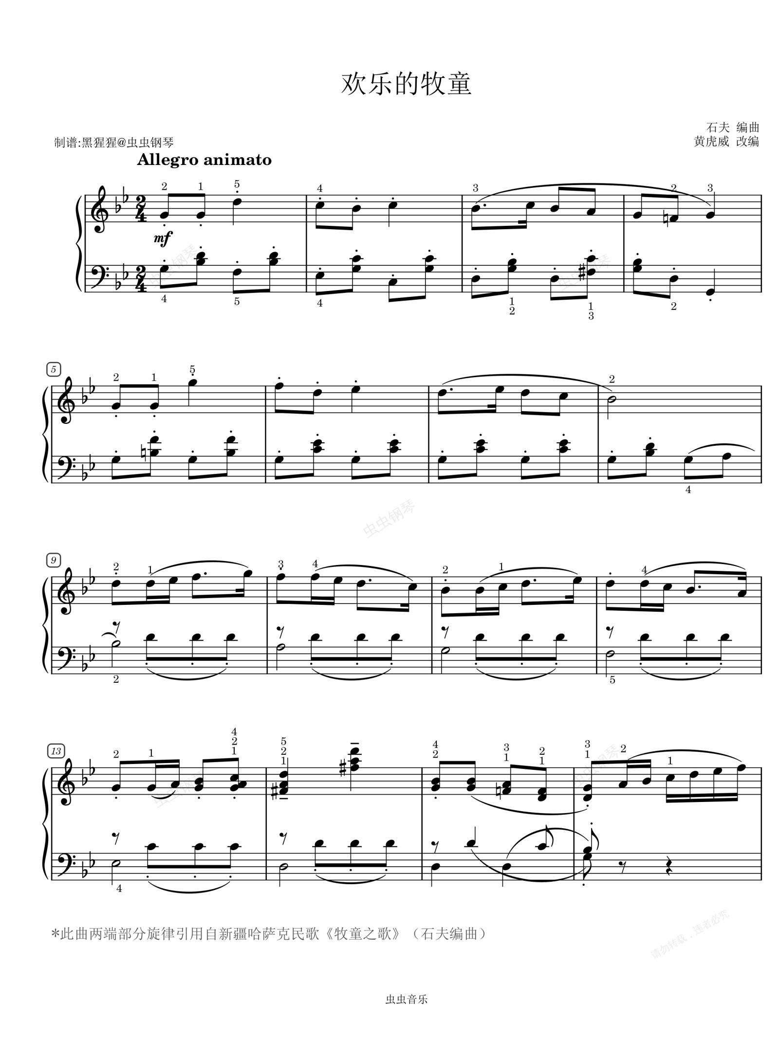 钢琴谱:黄虎威-Bb调 《欢乐的牧童》