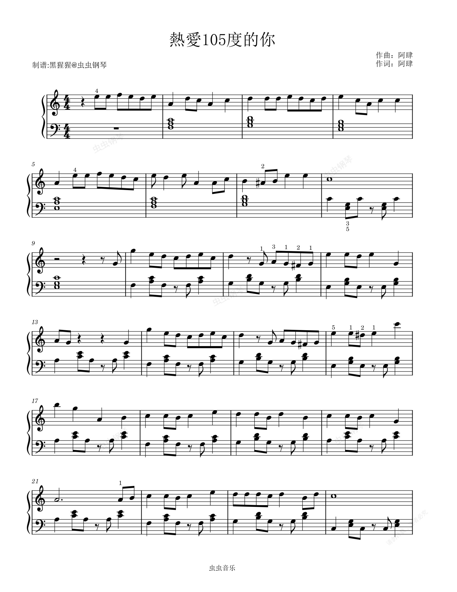 钢琴谱:阿肆-C调 《热爱105度的你》