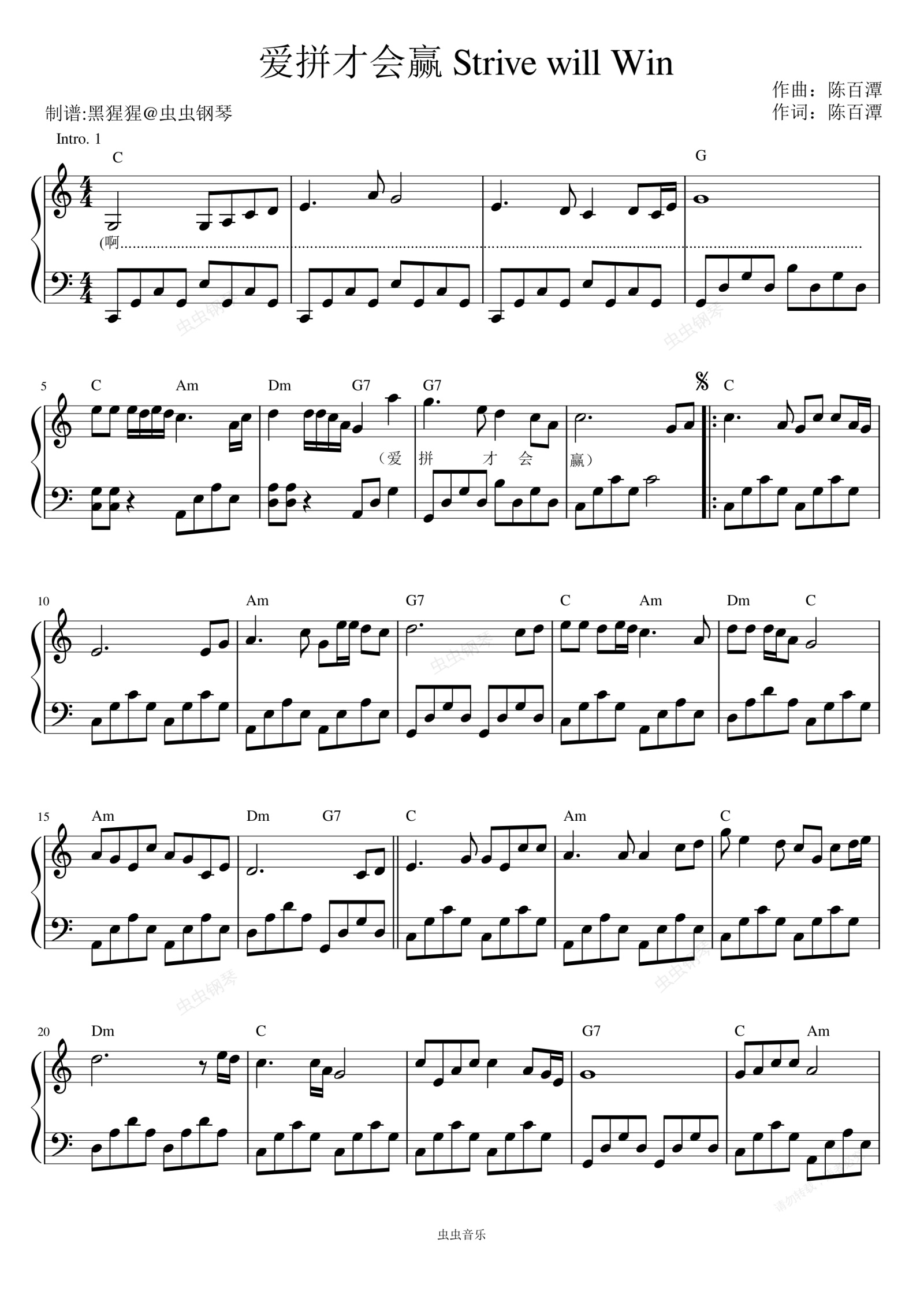 钢琴谱:叶启田-C调 《爱拼才会赢》