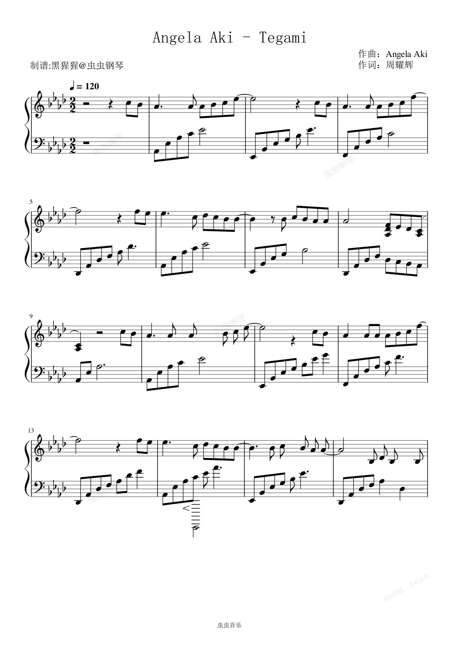 钢琴谱:钟舒漫-Ab调 《给自己的信》