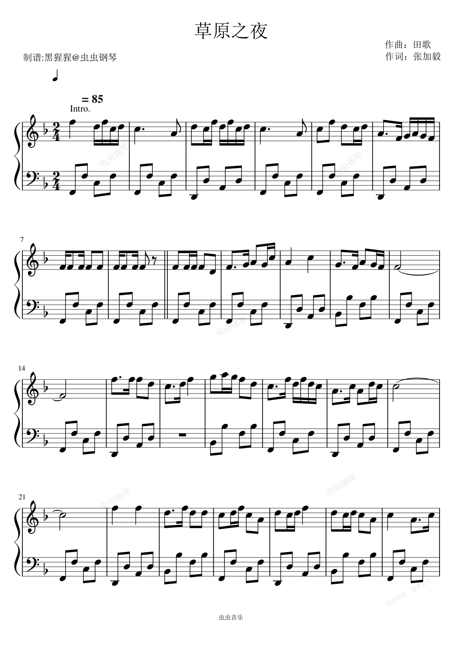 钢琴谱:李红霞-F调 《草原之夜》