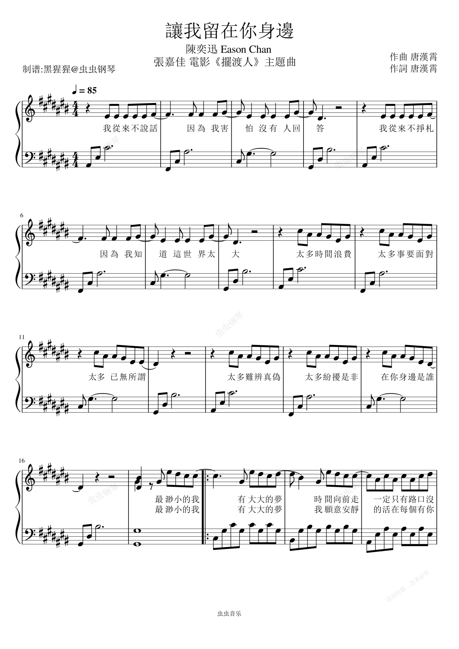 钢琴谱:陈奕迅-Db调 《让我留在你身边》